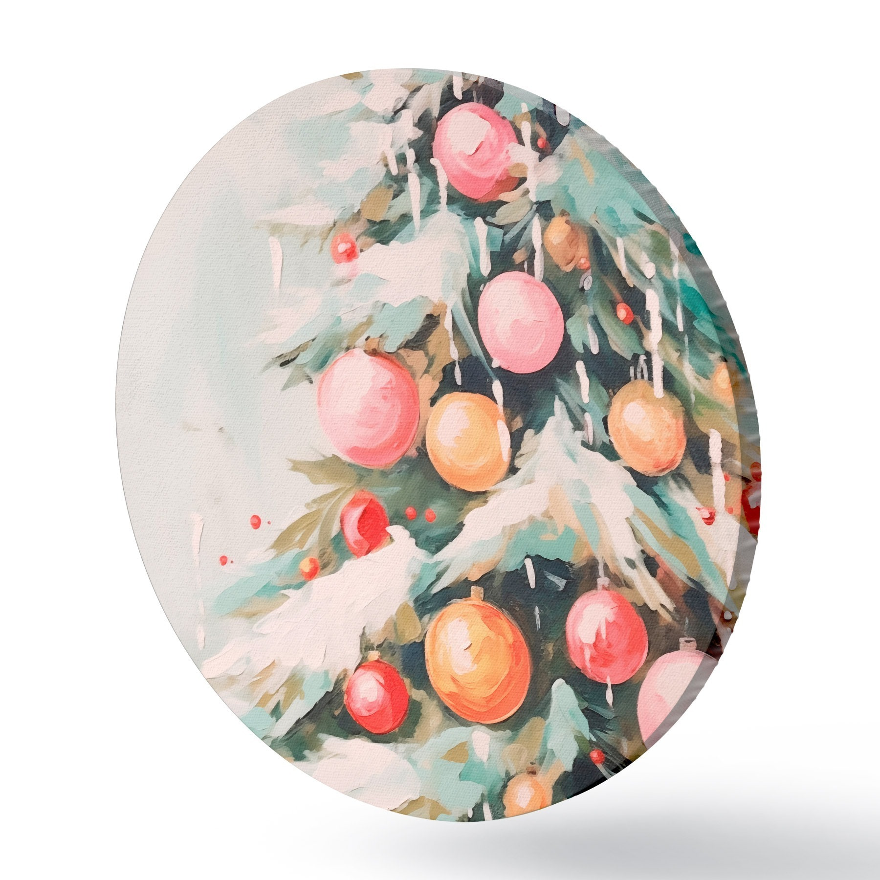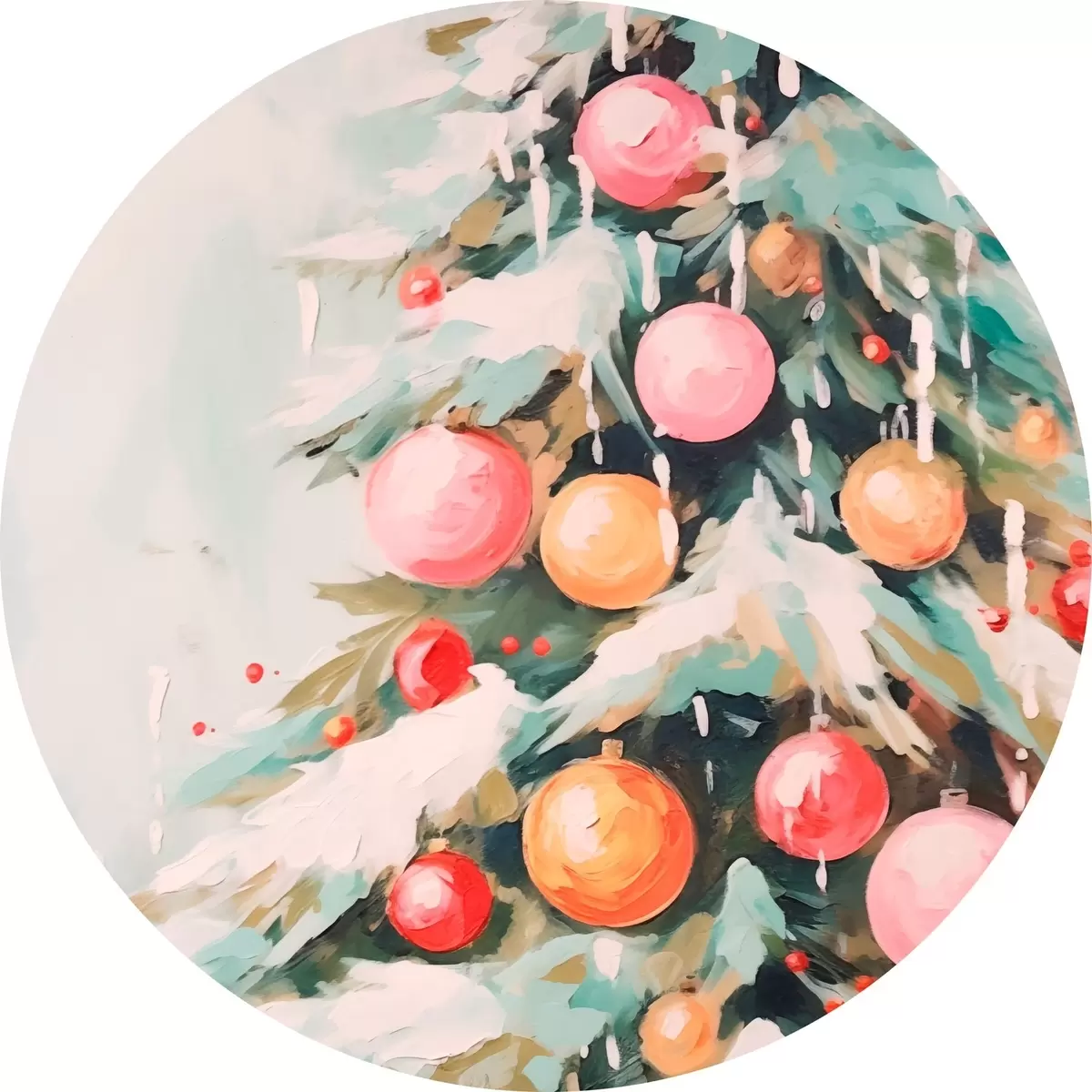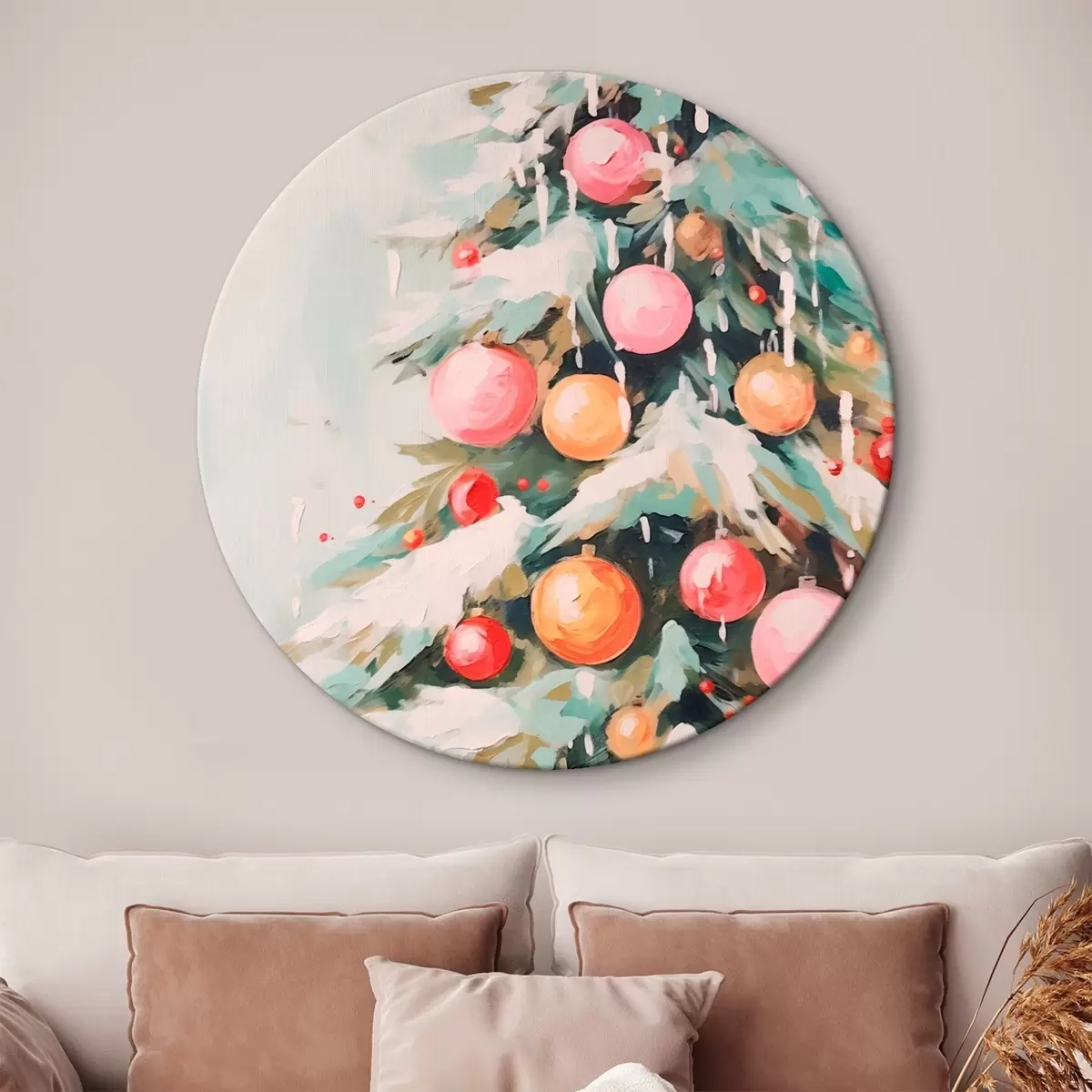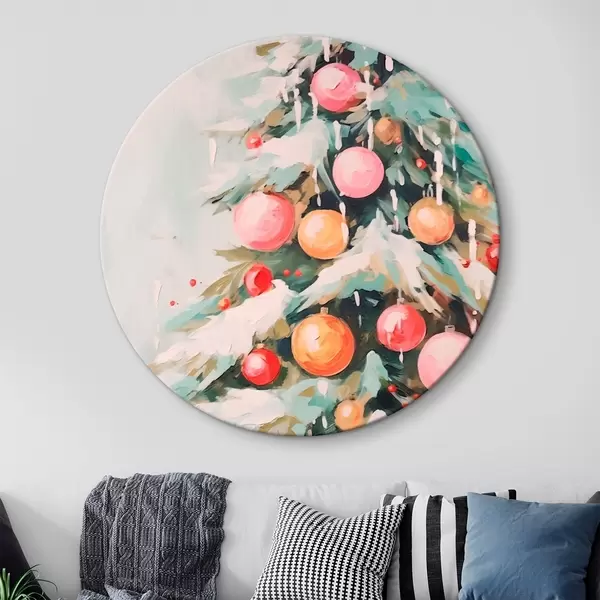 Runde Wandbilder Weihnachtsbaum mit Schnee und rosa Kugeln Nr r46480