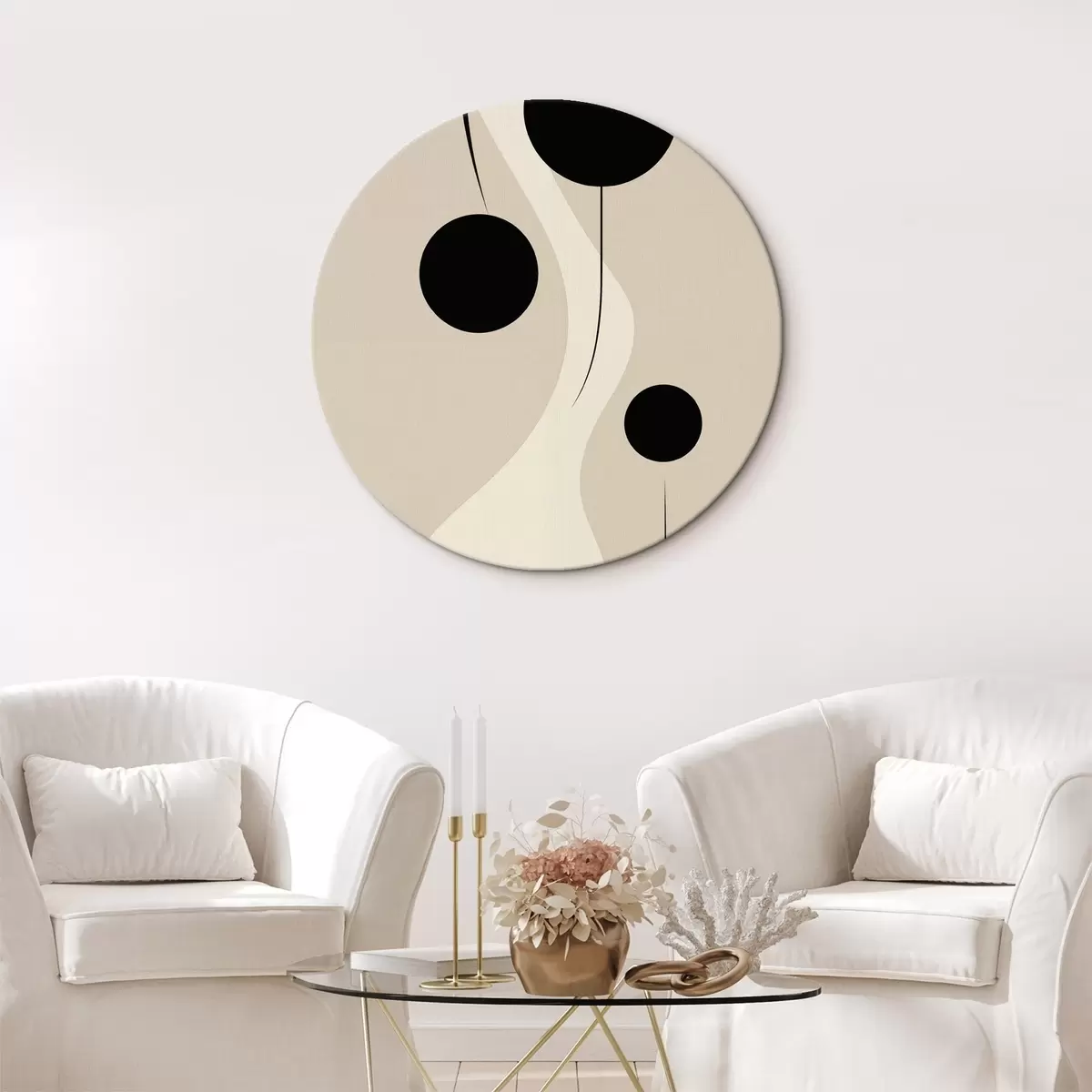 Runde Wandbilder Minimale Kreise auf Beige mit fließenden Linienakzenten r46496