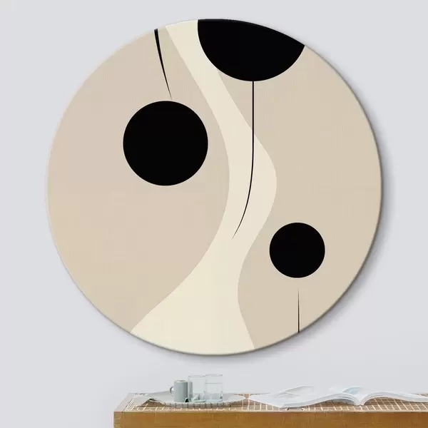 Runde Wandbilder Minimale Kreise auf Beige mit fließenden Linienakzenten Nr r46496