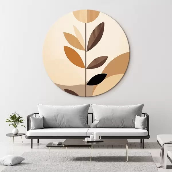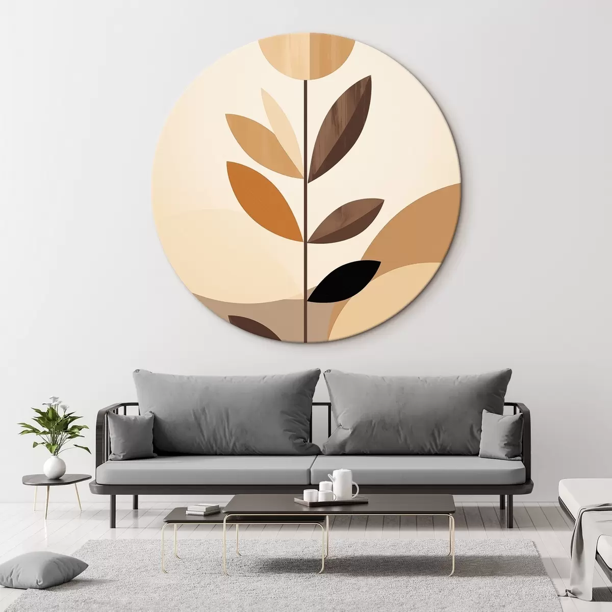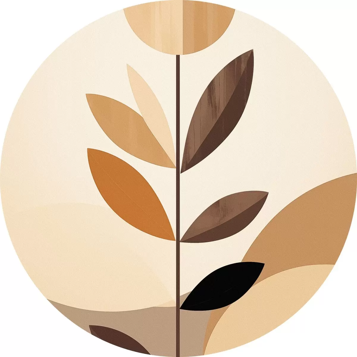 Runde Wandbilder Stilisierte Blume mit geometrischen Blättern in warmen Farbtönen Nr r46500