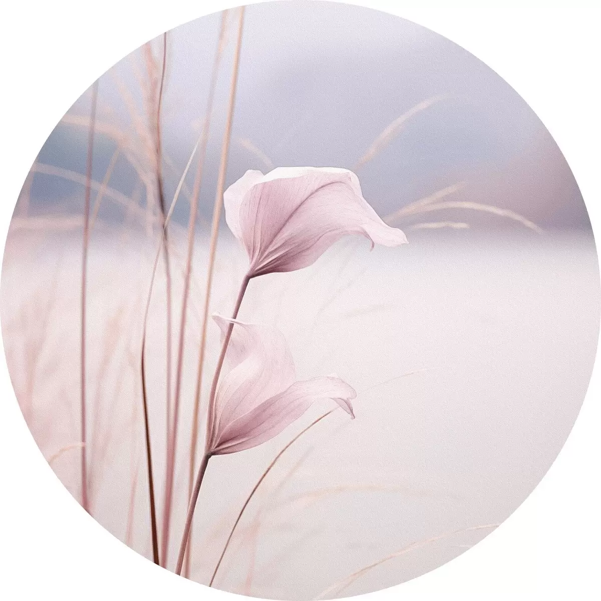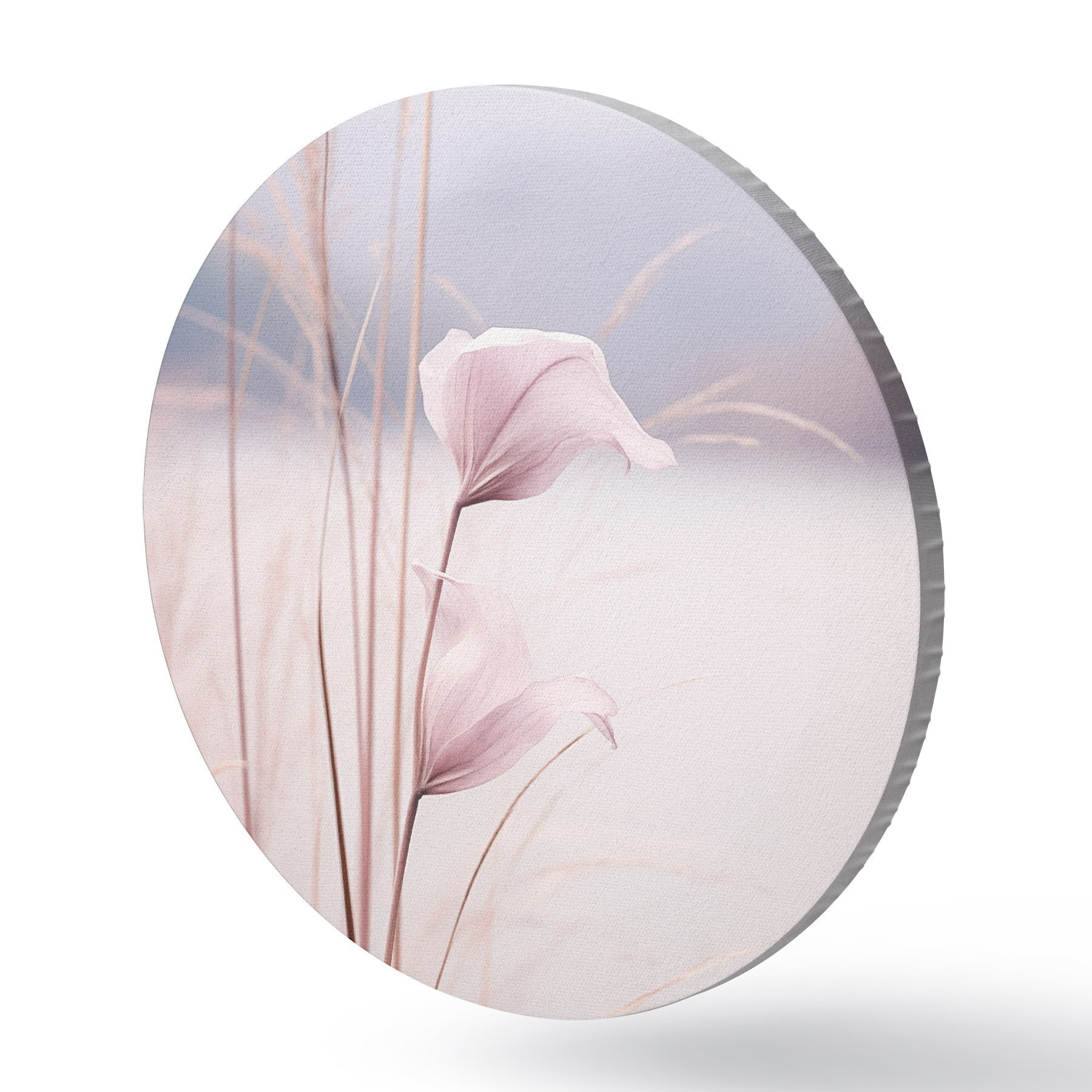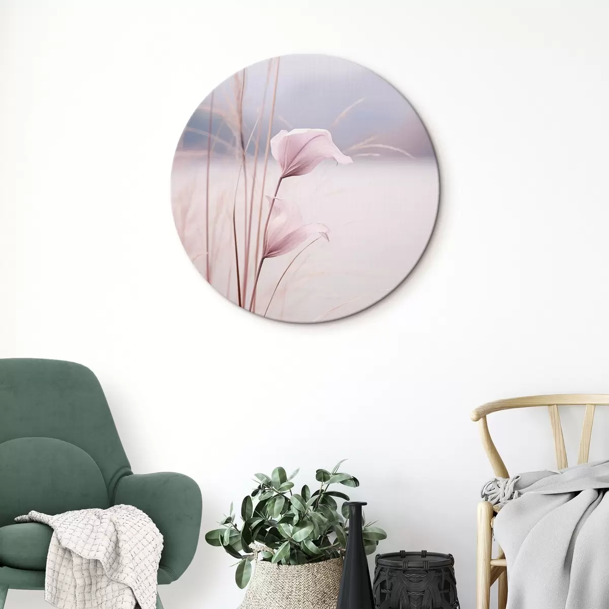 Runde Wandbilder Zarte rosa Blüten am ruhigen Seeufer Nr r46503