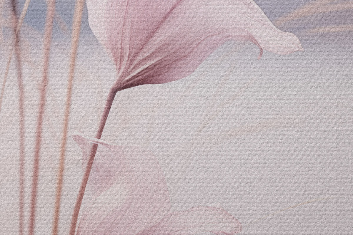 Drei Materialtypen stehen zur Verfügung: Economic Canvas - ein dichtes und haltbares Material für den Digitaldruck, identisch mit Malerleinwand, wasserfeste Oberfläche, realistische Wiedergabe von Details, mittelkörniges Material. Premium Canvas - die Textur ähnelt der einer Malerleinwand (verwobene kleine Fäden). Weiche, detaillierte Wiedergabe des Bildes auf einer matten Oberfläche. Eco-Premium - hochwertiges Gewebe aus 100% Baumwolle. Dank der natürlichen Baumwollfasern ist das Material langlebig und verschleißfest. Hervorragende Farbwiedergabe und Detailtreue.