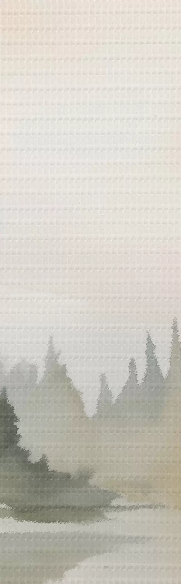 Runde Wandbilder Nebelverhangener Nadelwald über einem ruhigen Fluss, Aquarellstil r46507