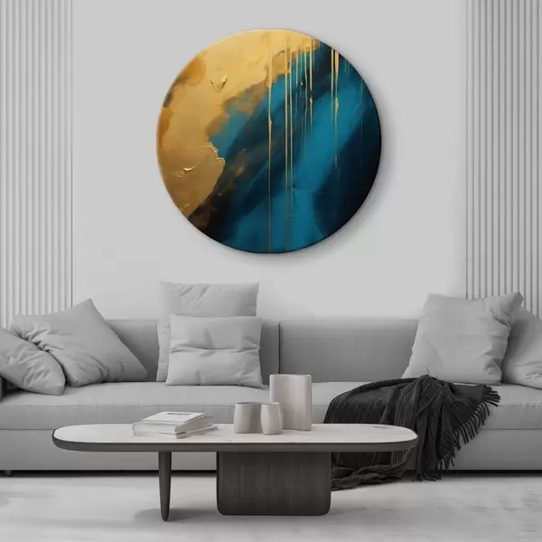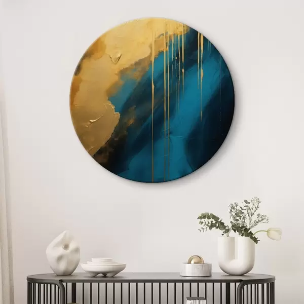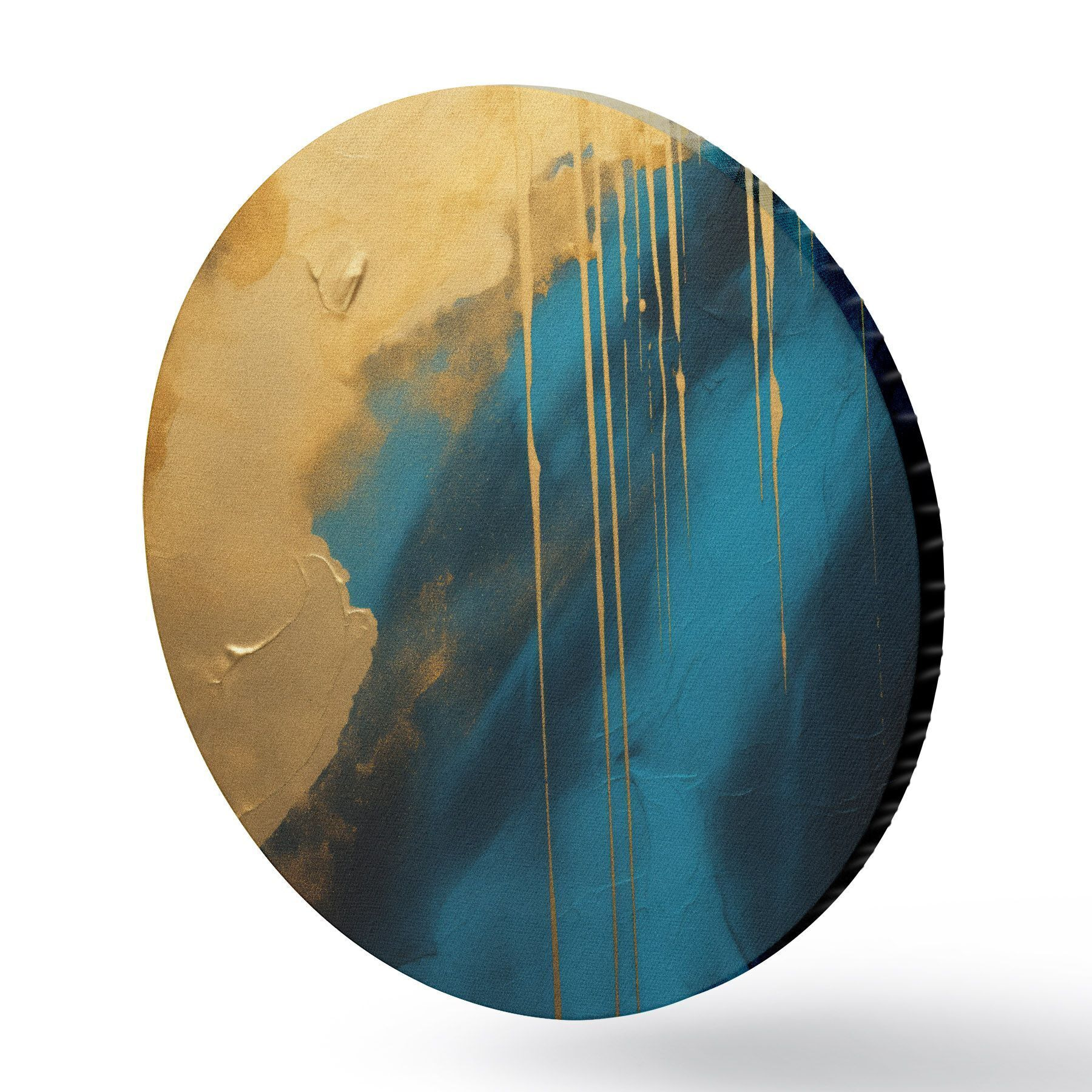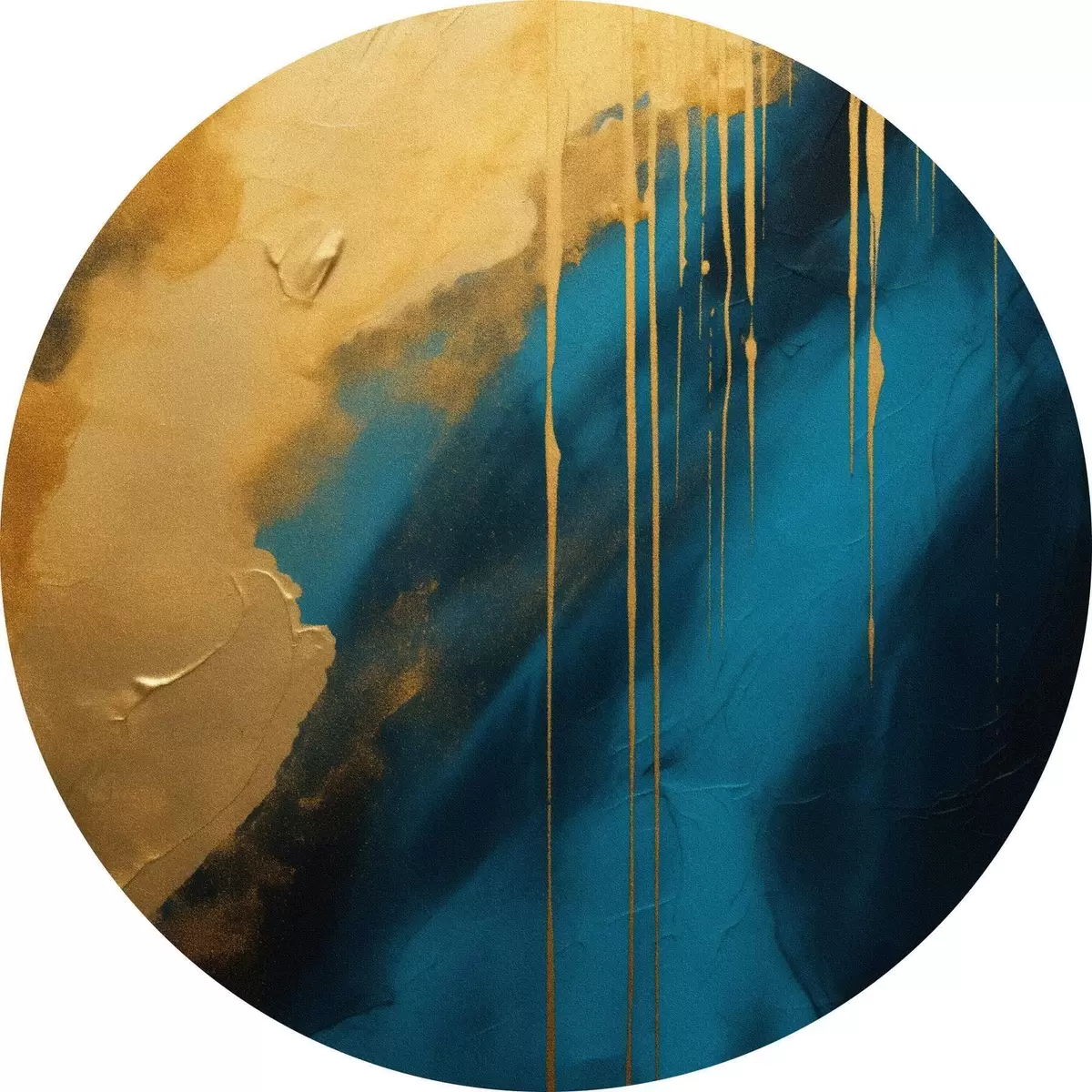 Runde Wandbilder Teal und tiefblaues Abstraktes mit fließenden warmen Akzenten Nr r46509