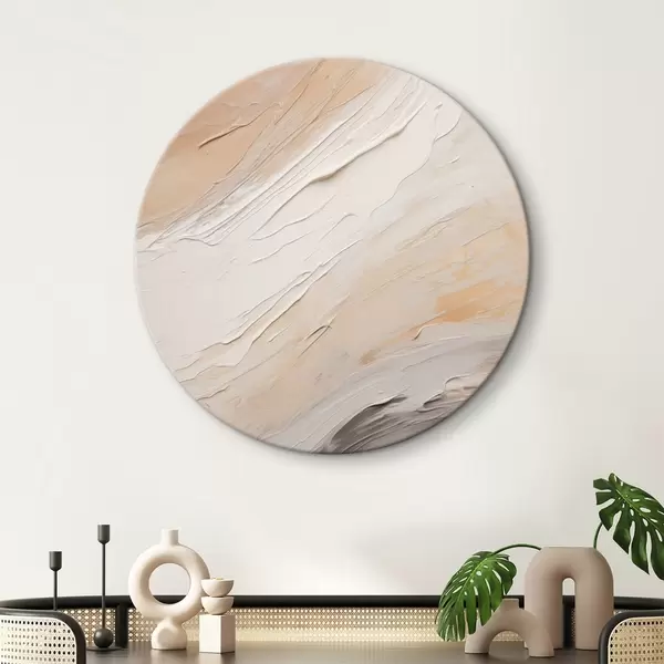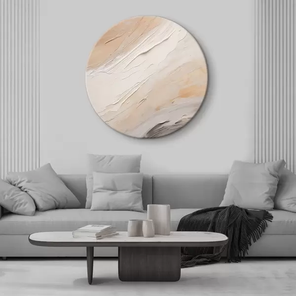 Runde Wandbilder Strukturierter Putz in warmen Beigetönen mit sanftem Grau r46511