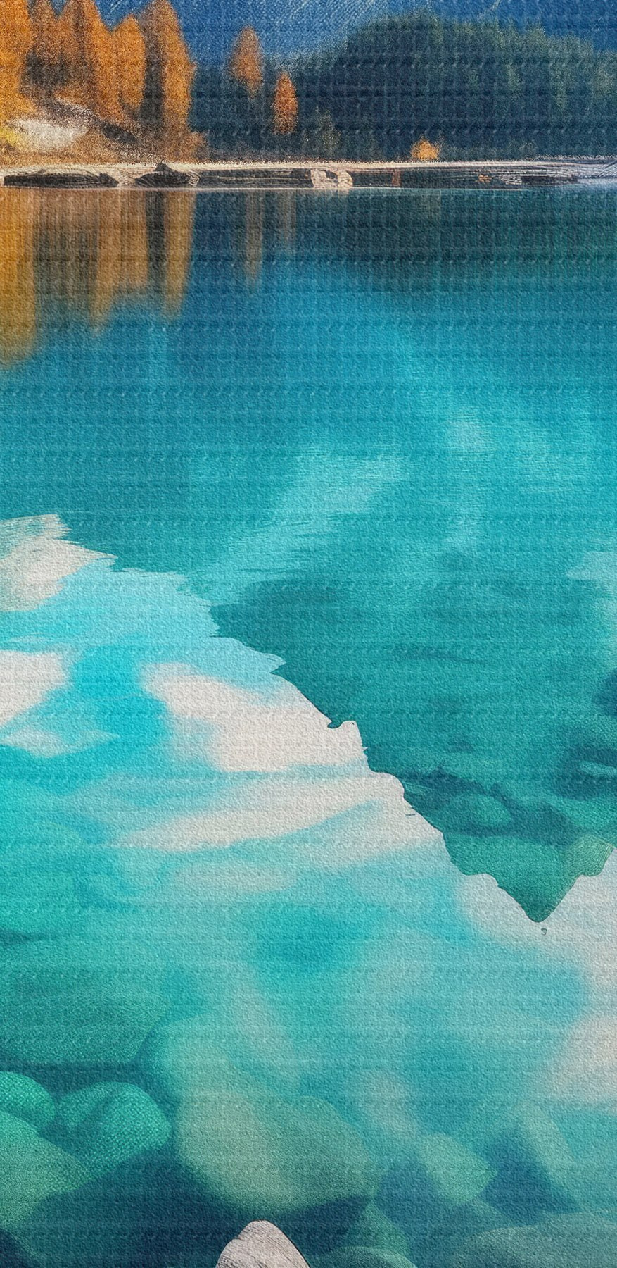 Runde Wandbilder Bergsee mit türkisfarbenem Wasser und herbstlichen Lärchen r46517