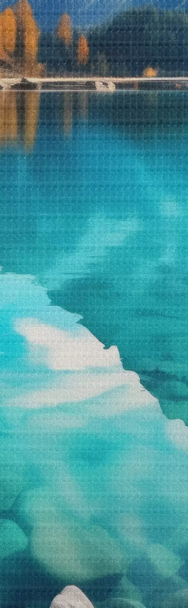 Runde Wandbilder Bergsee mit türkisfarbenem Wasser und herbstlichen Lärchen r46517
