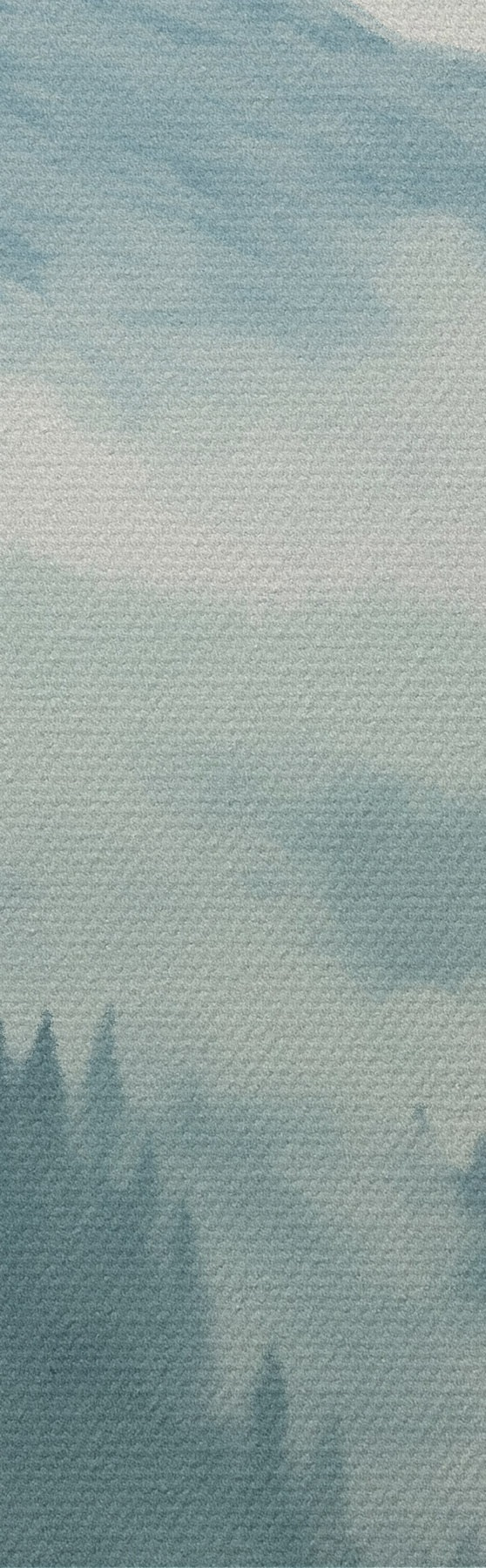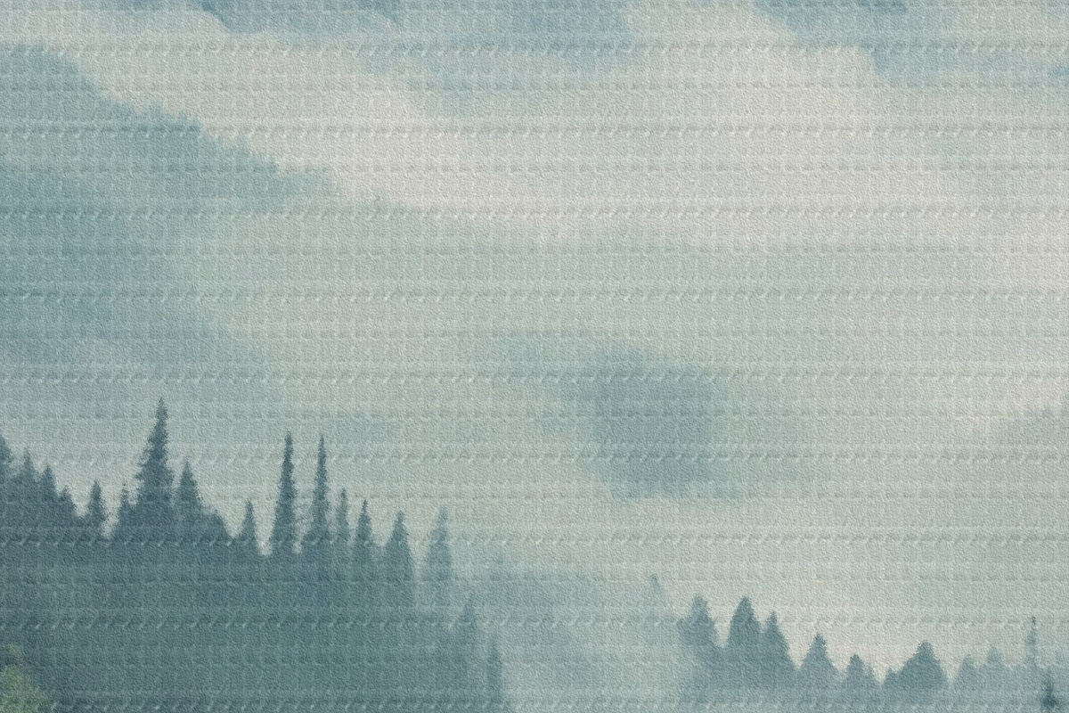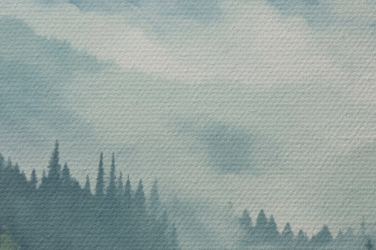 Runde Wandbilder Aquarellberge und Wald im sanften Morgennebel r46519