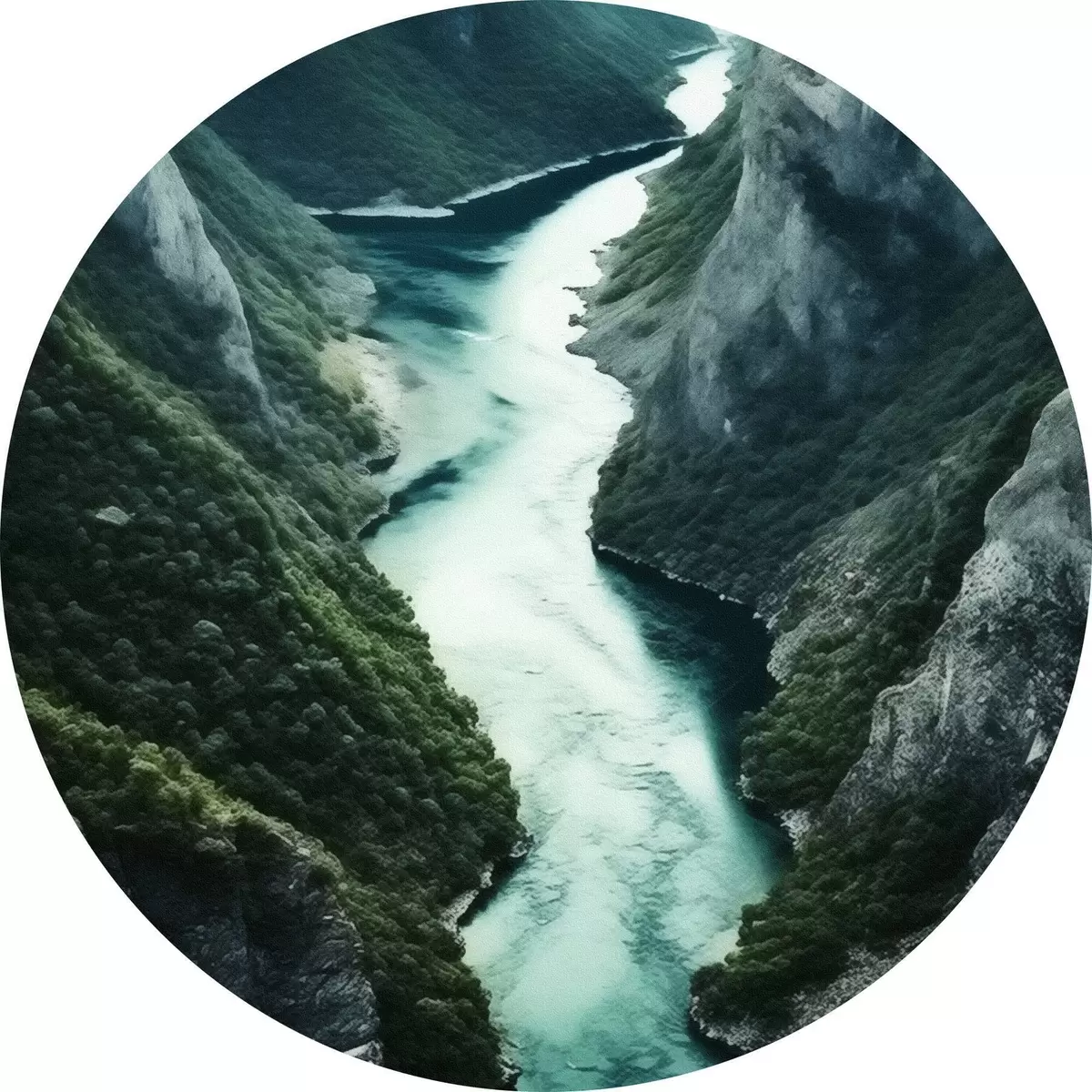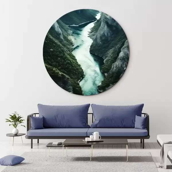 Runde Wandbilder Enge Schlucht mit türkisfarbenem Wasserstrom von oben Nr r46522