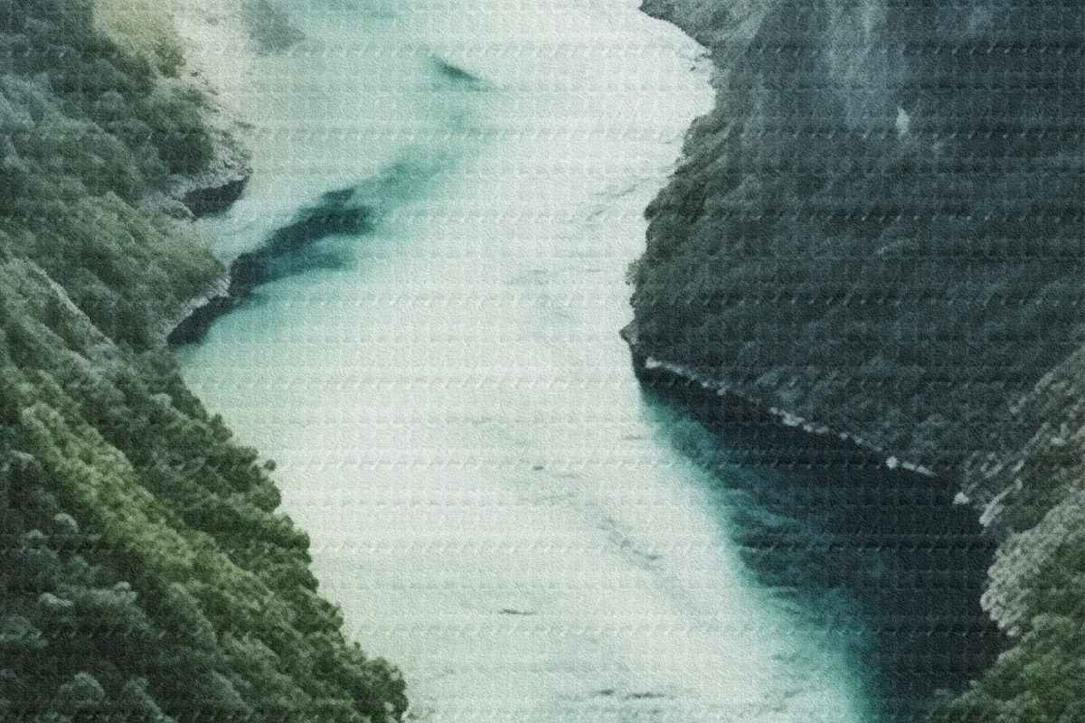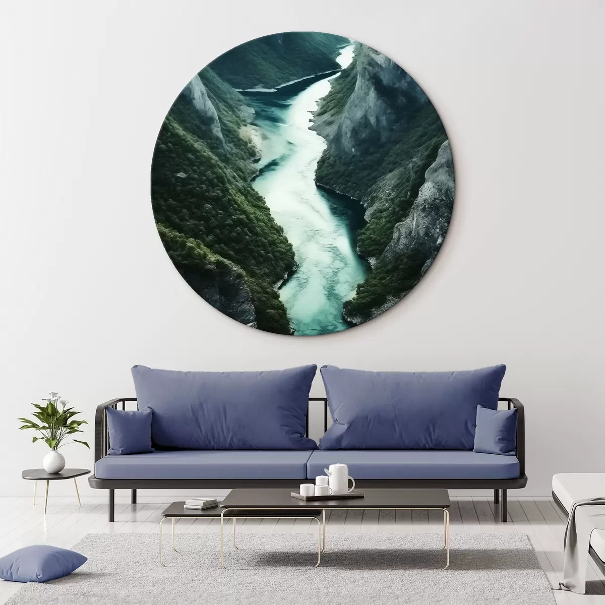 Runde Wandbilder Enge Schlucht mit türkisfarbenem Wasserstrom von oben r46522