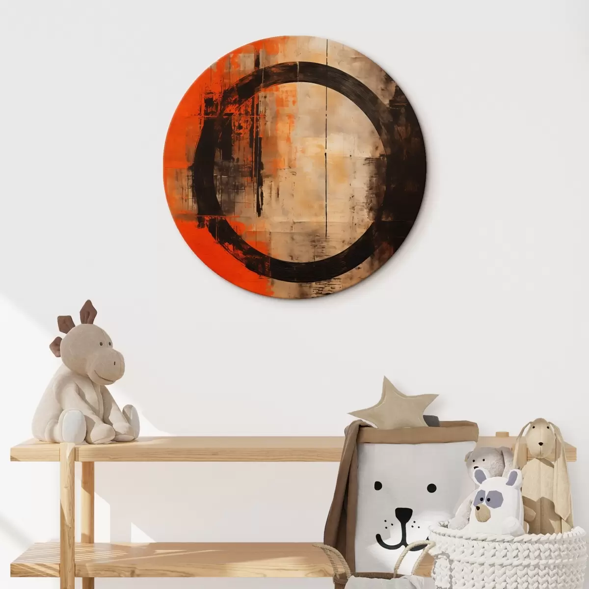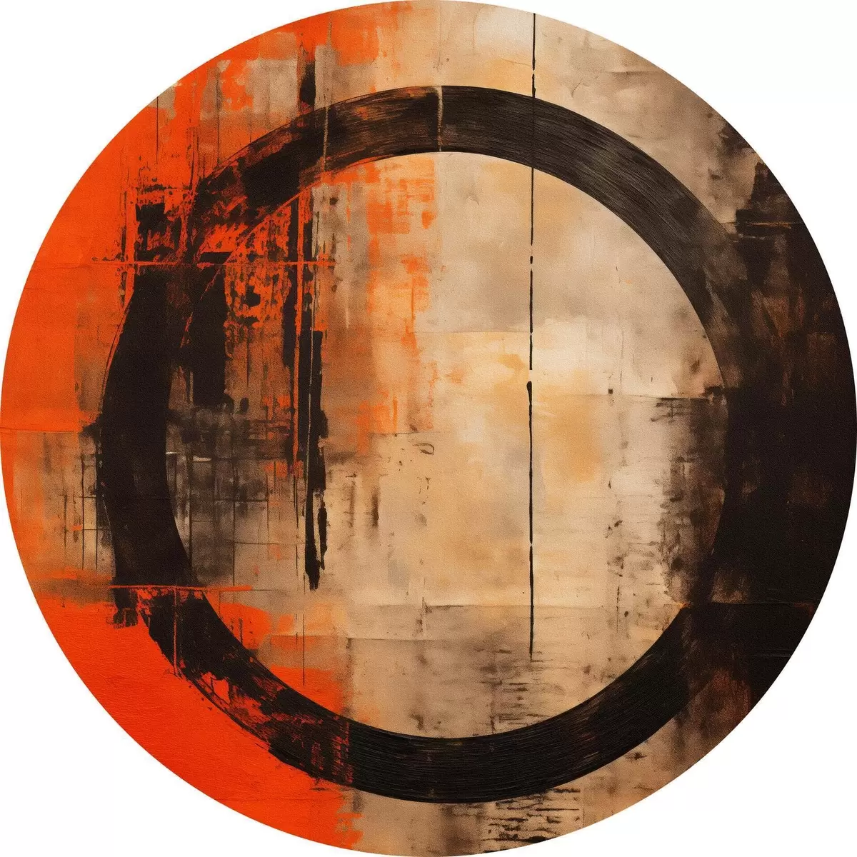Runde Wandbilder Abstraktes Bild mit großem schwarzen Kreis und warmen Texturen r46528