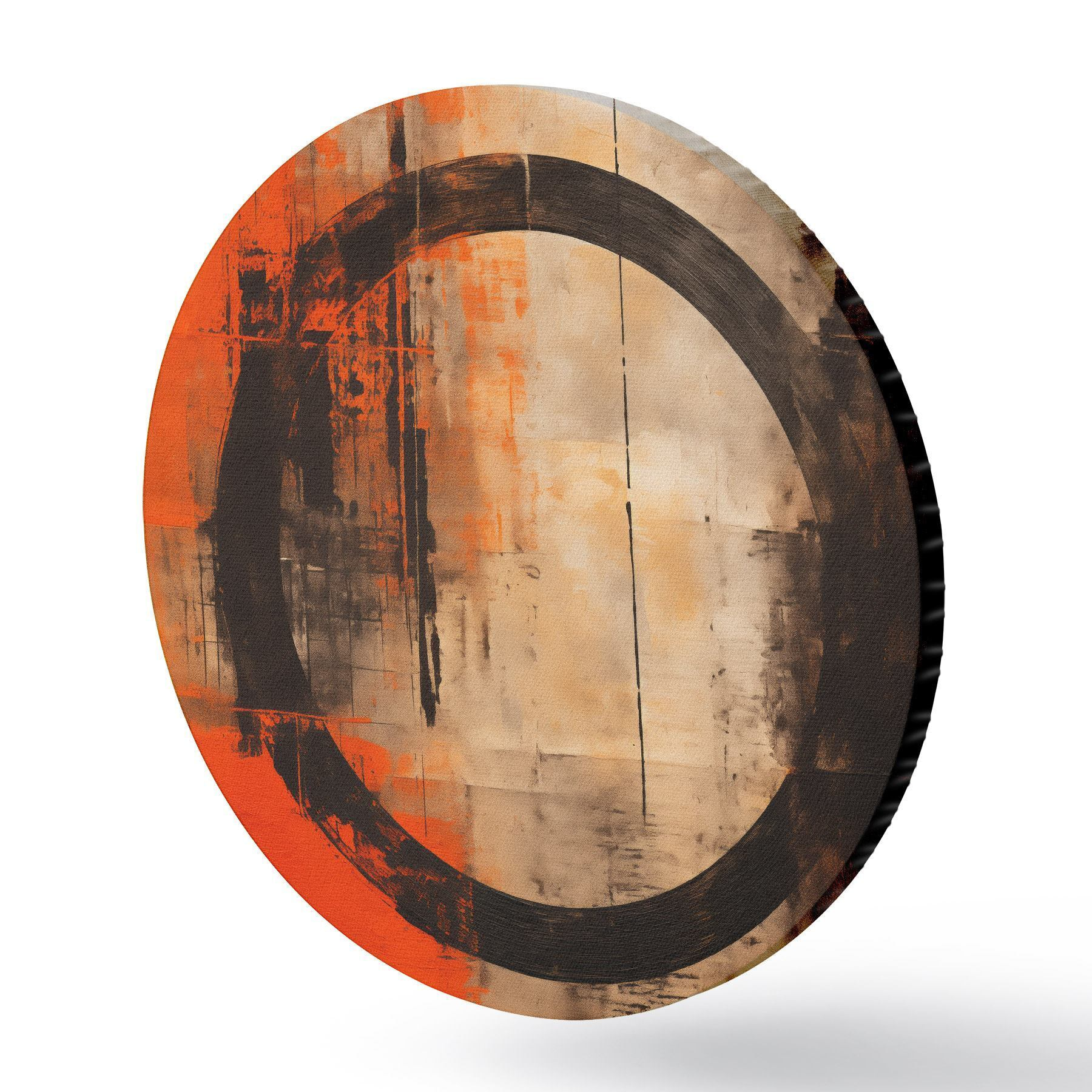 Runde Wandbilder Abstraktes Bild mit großem schwarzen Kreis und warmen Texturen Nr r46528