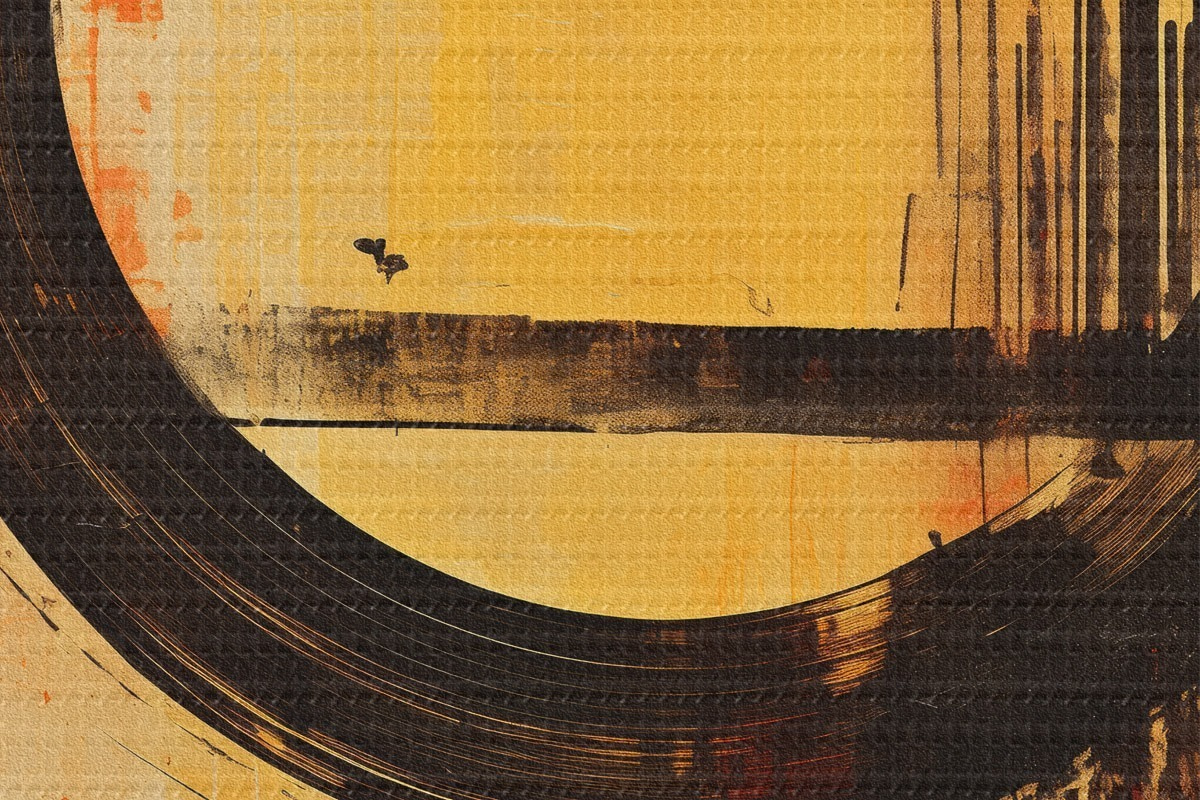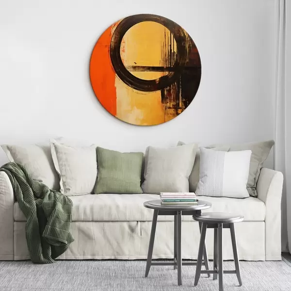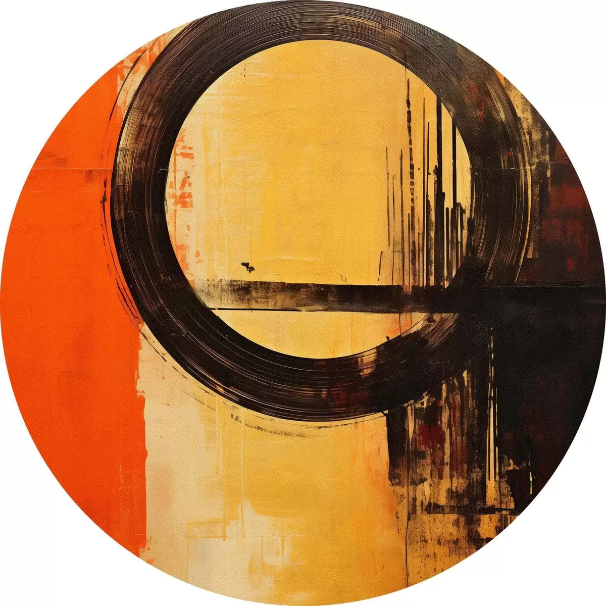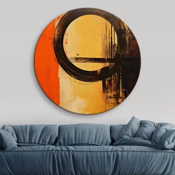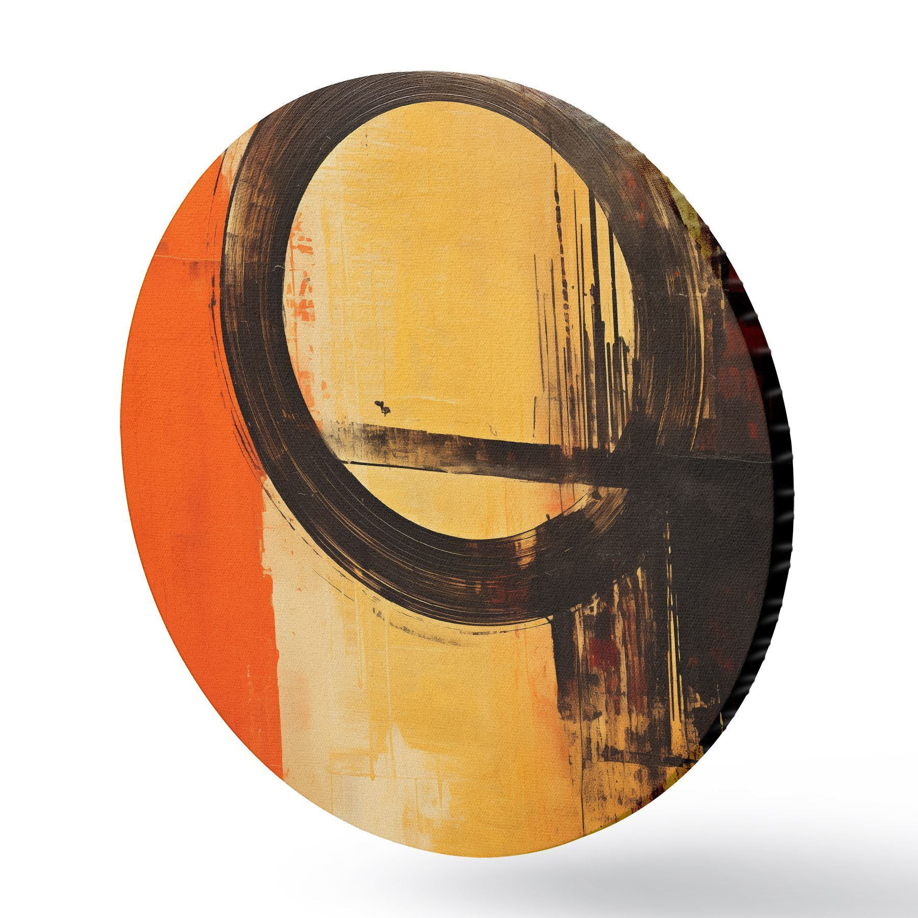 Runde Wandbilder Abstraktes Motiv mit schwarzem Ring auf terrakottafarbenem Sandhintergrund Nr r46529