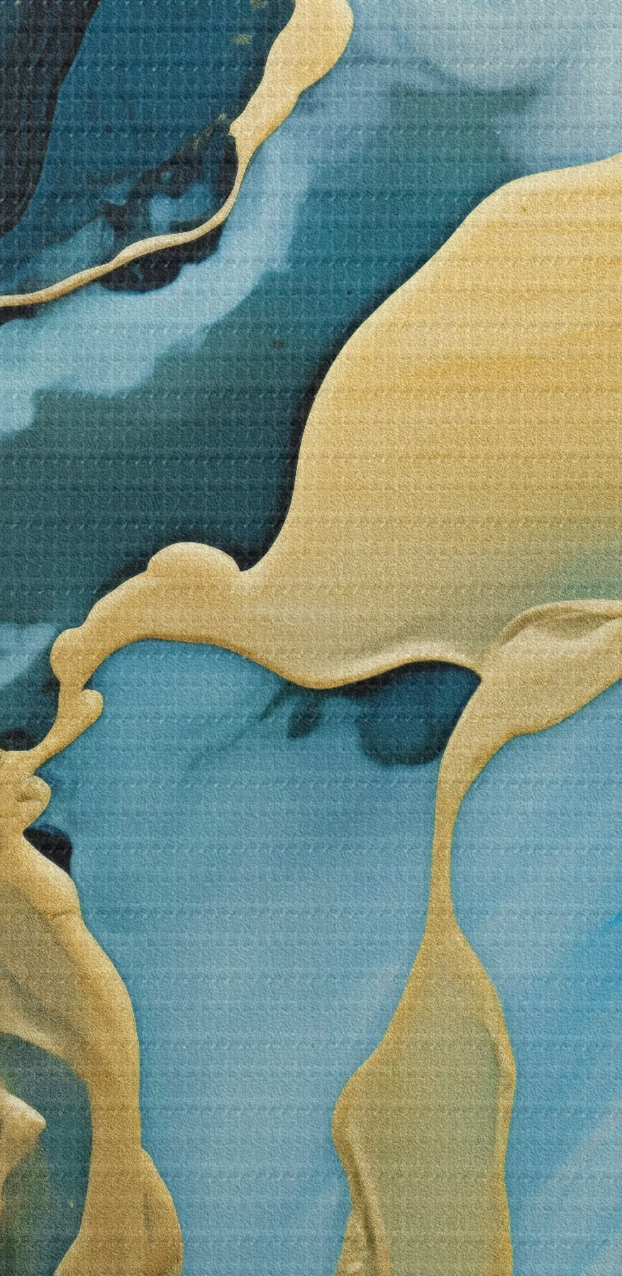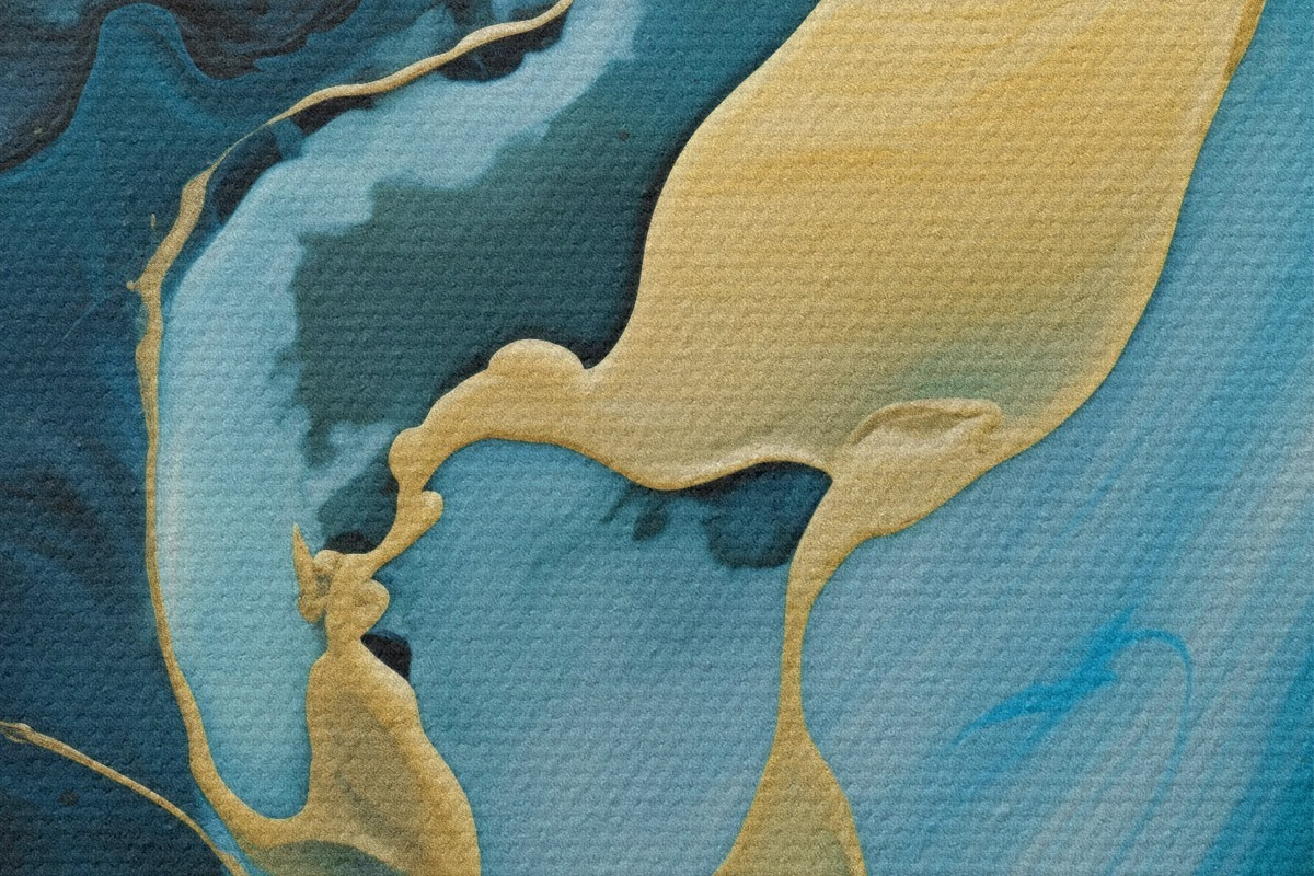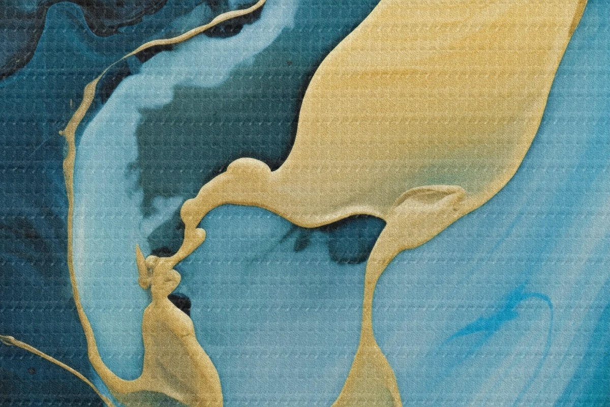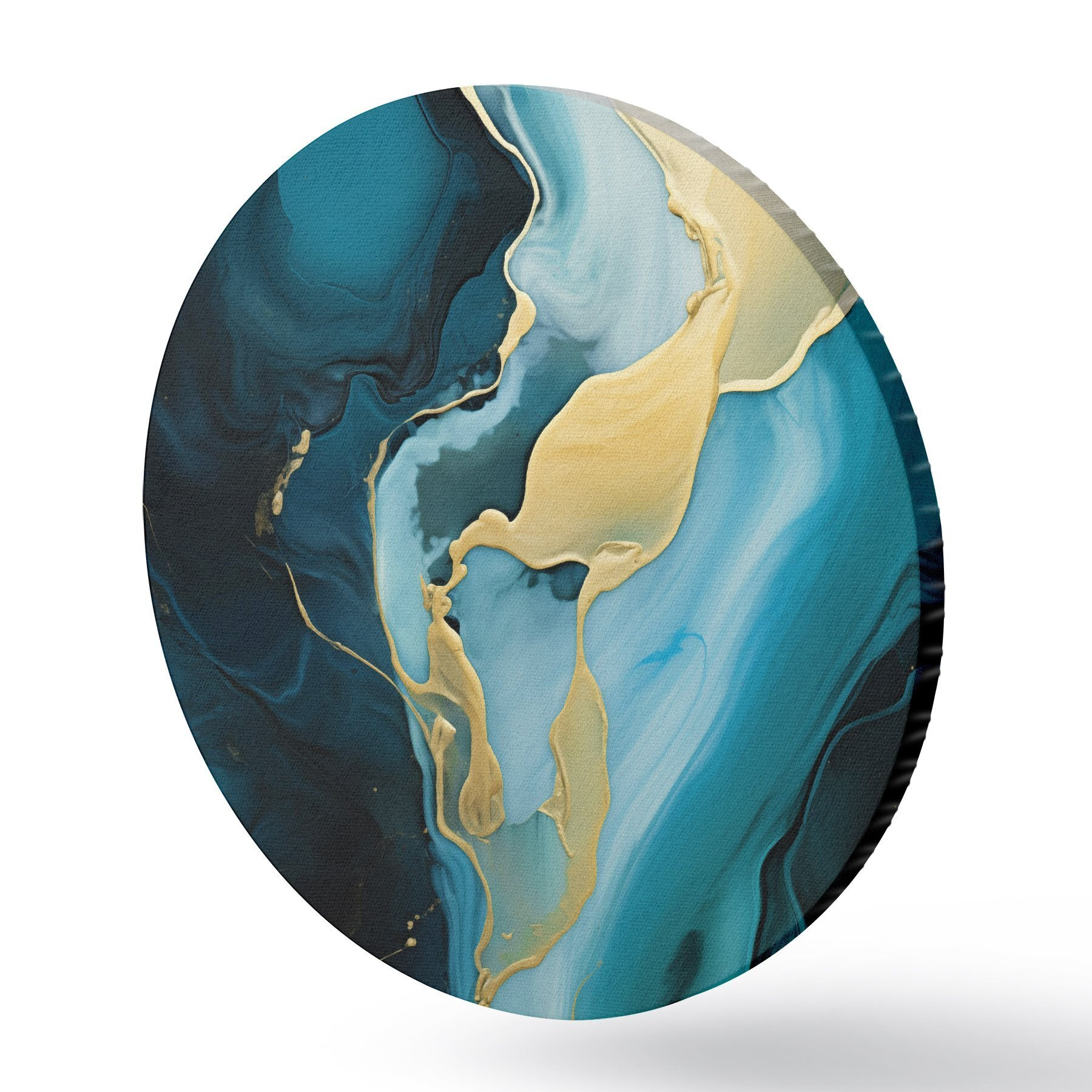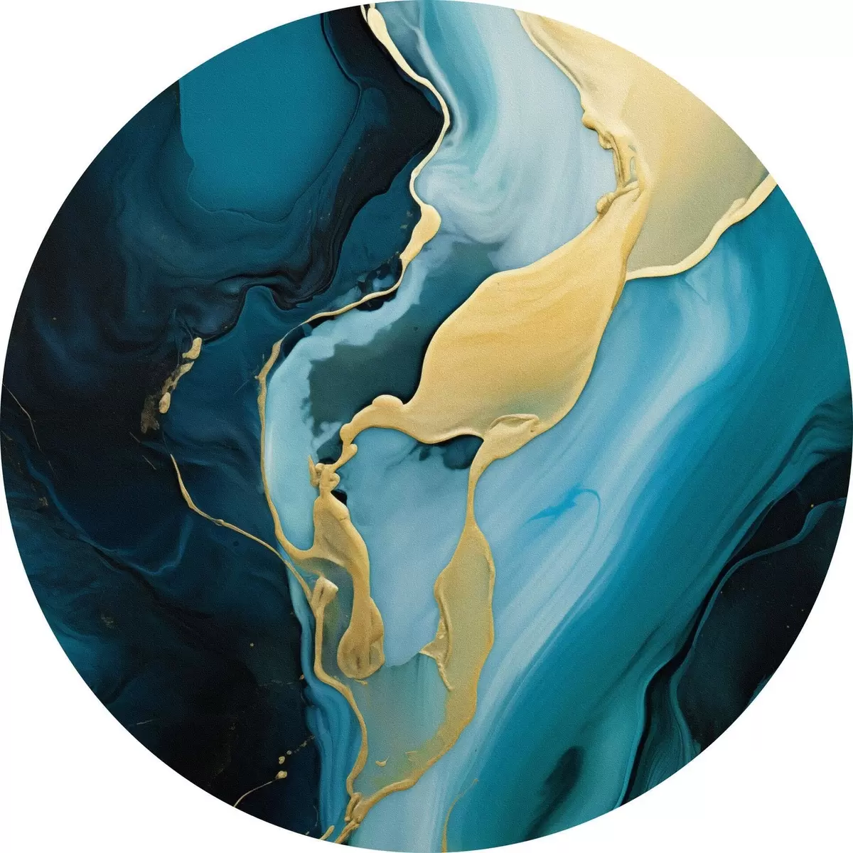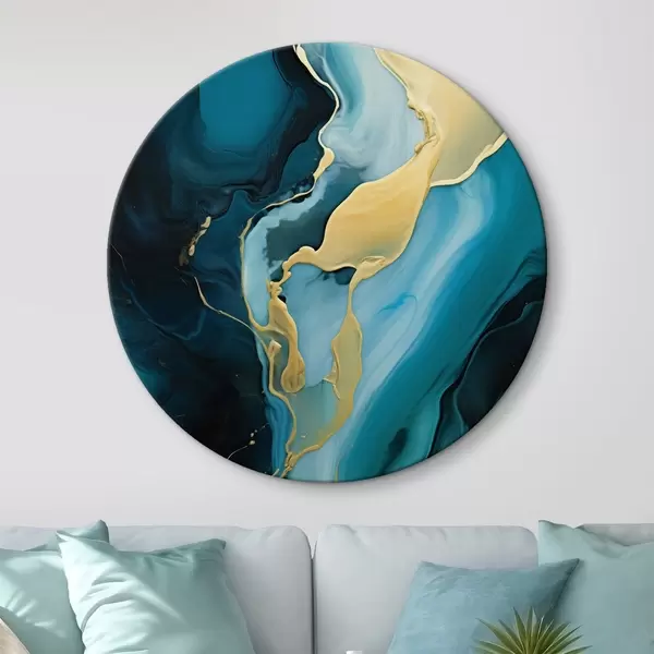 Runde Wandbilder Tealblaues Abstraktes mit einem ockerfarbenen Strom r46530