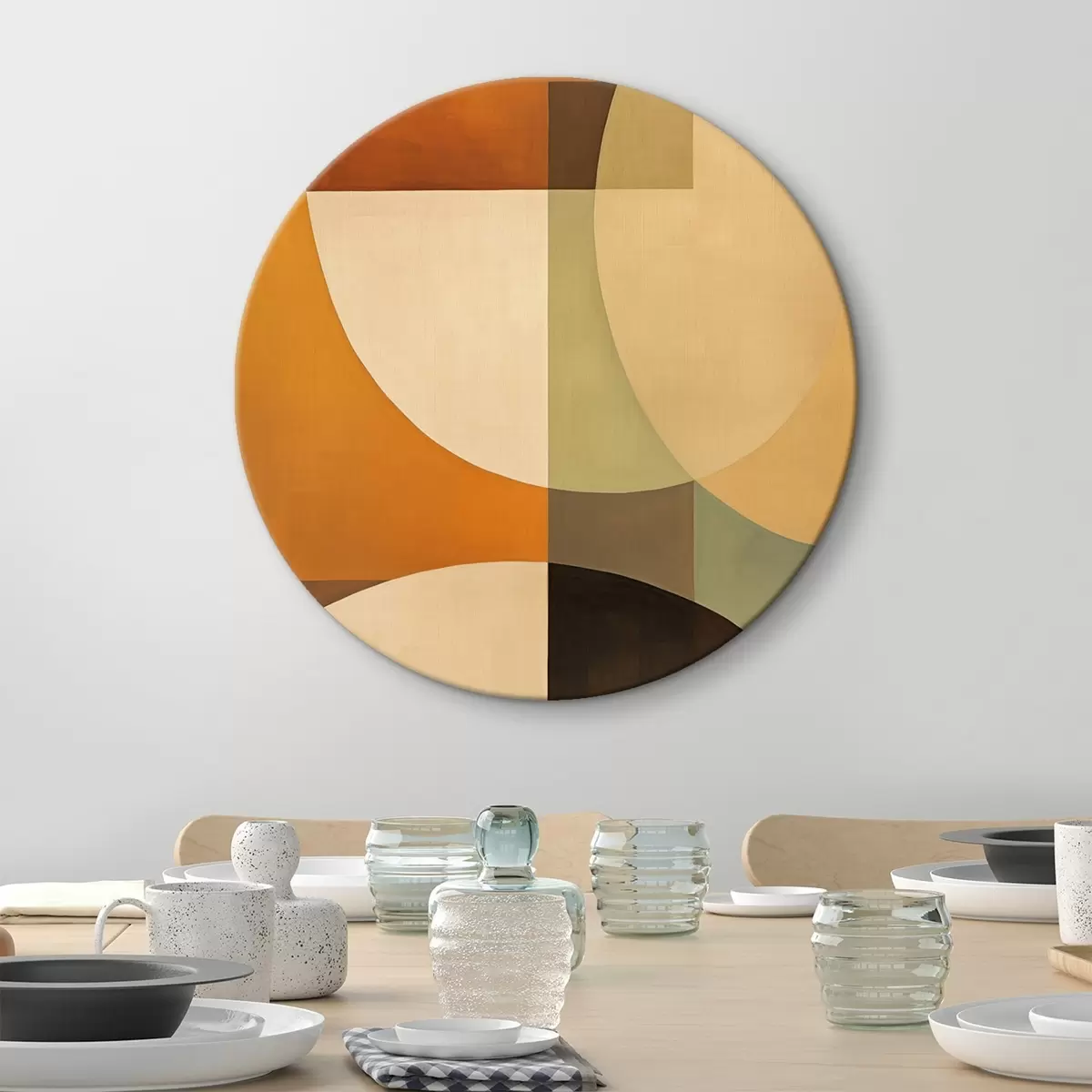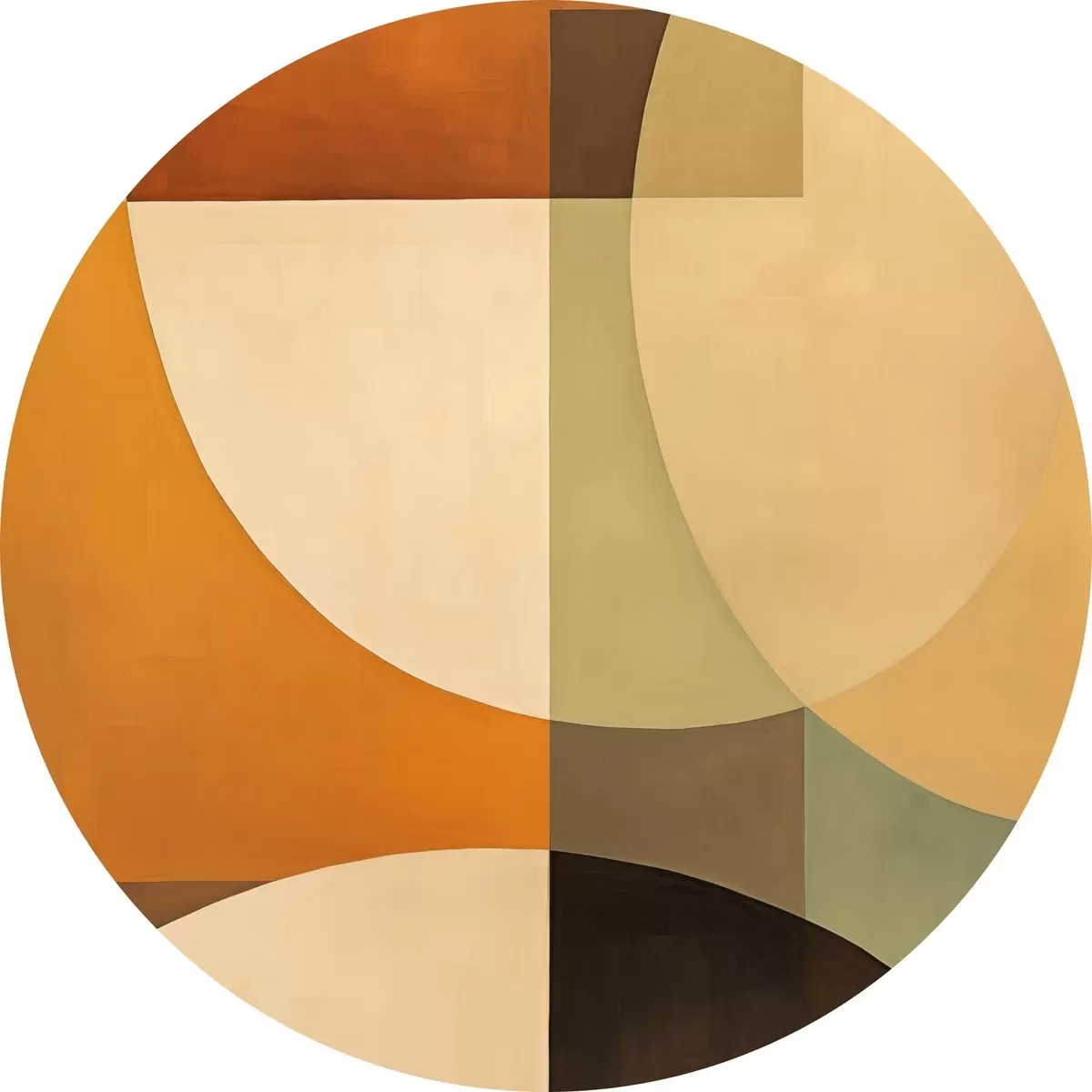 Runde Wandbilder Große sich überschneidende Formen in Terrakotta-Olivtönen r46533