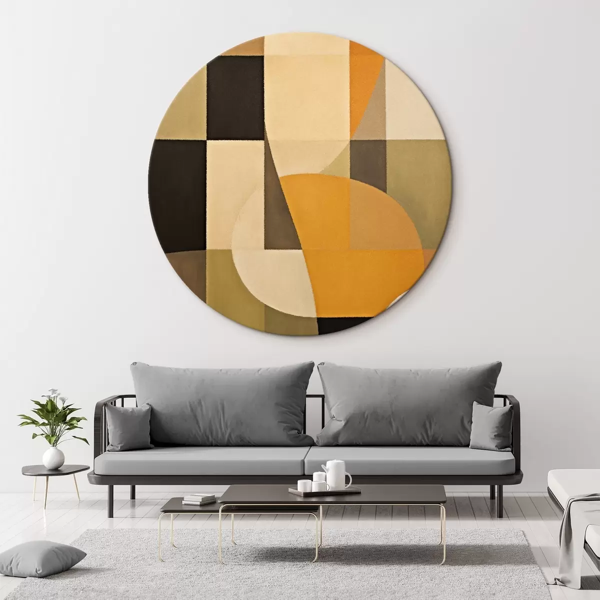 Runde Wandbilder Patchwork aus Rechtecken mit einem sanften orangefarbenen Bogen r46534