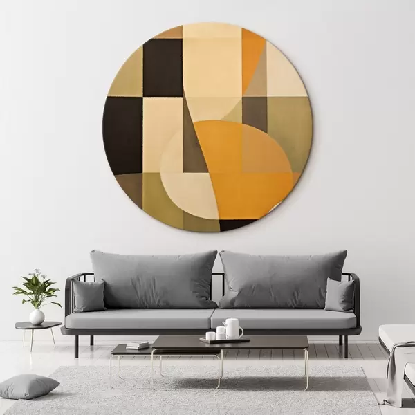 Runde Wandbilder Patchwork aus Rechtecken mit einem sanften orangefarbenen Bogen Nr r46534