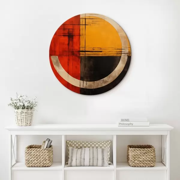Runde Wandbilder Abstrakter Kreis auf rot-schwarzem Hintergrund mit Linien r46535