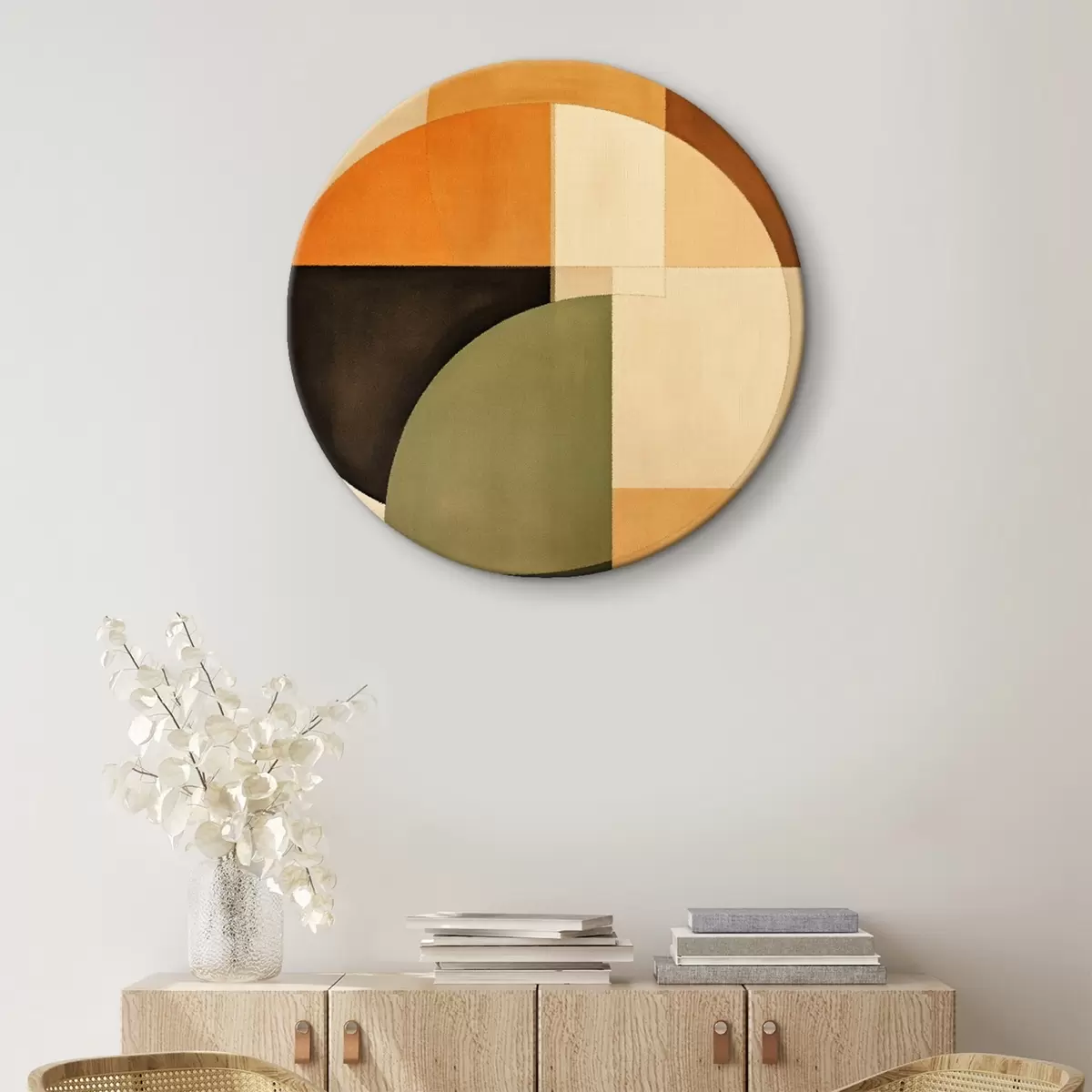Runde Wandbilder Sich überschneidende Kreise in einer sand-olivfarbenen Palette r46537