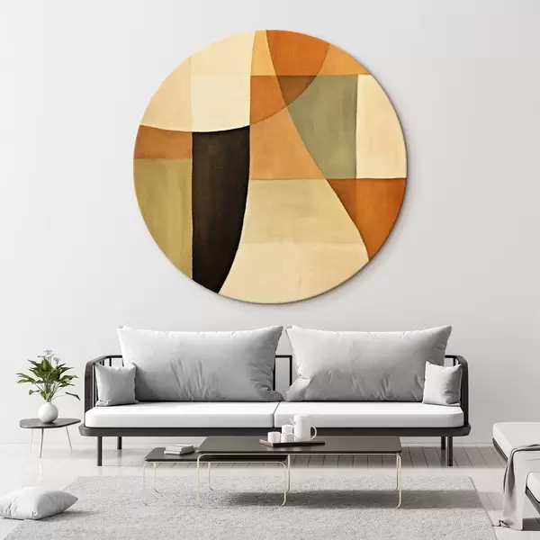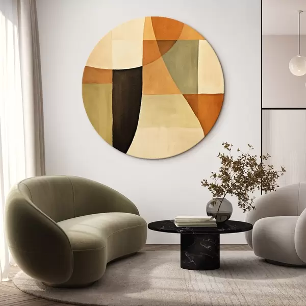 Runde Wandbilder Weiche geometrische Felder in einer warmen, natürlichen Farbpalette Nr r46538