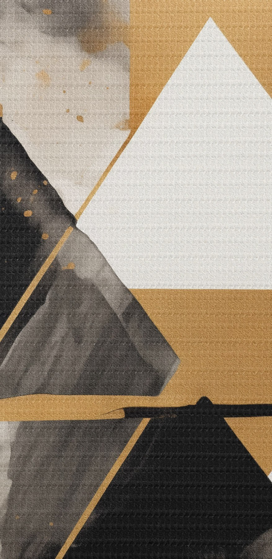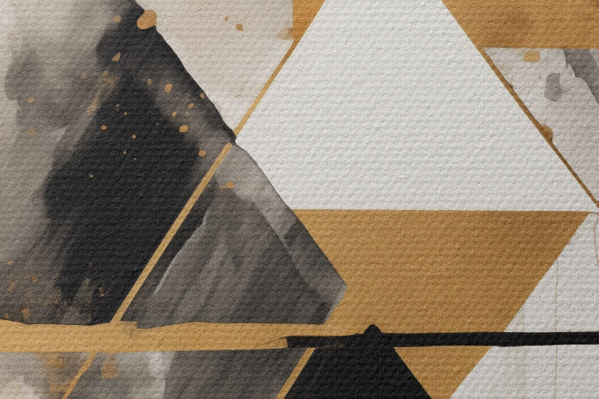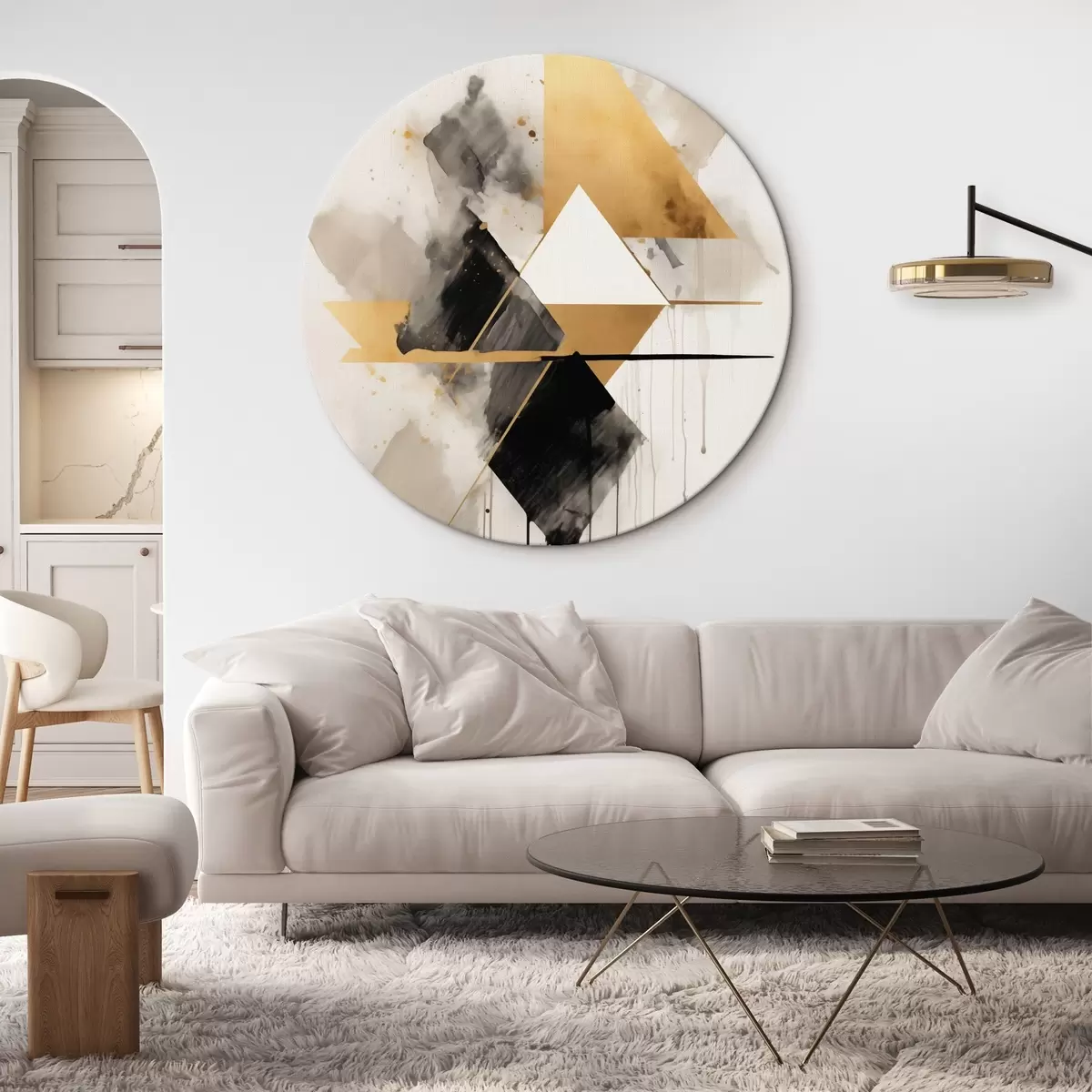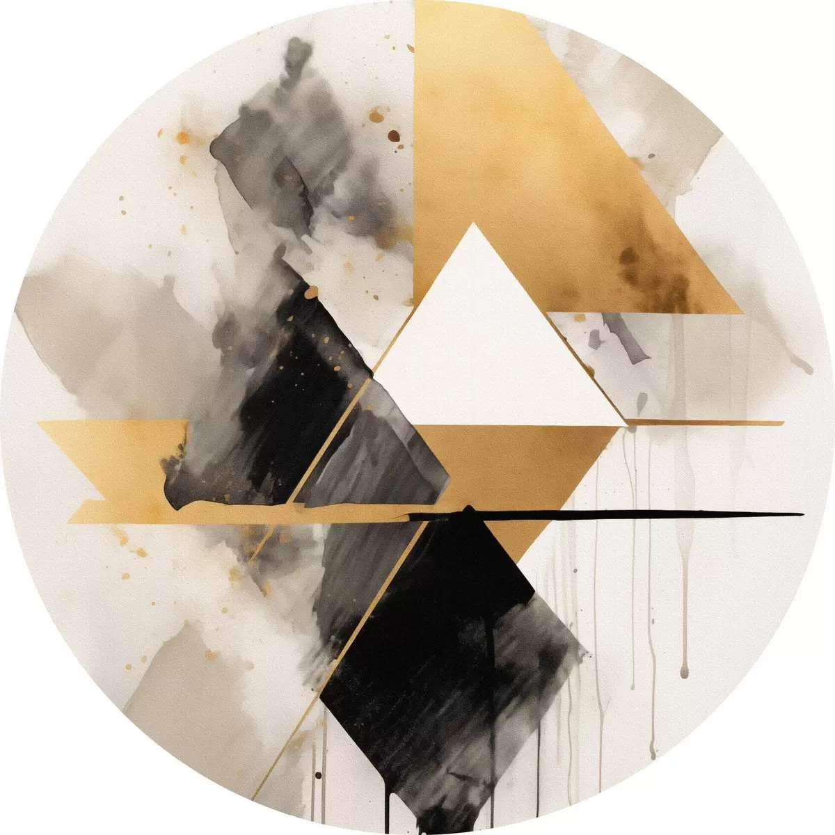 Runde Wandbilder Geometrie mit Dreiecken und einem schwarzen Rhombus, beige Striche Nr r46539
