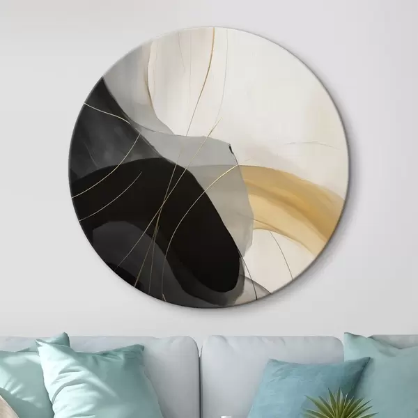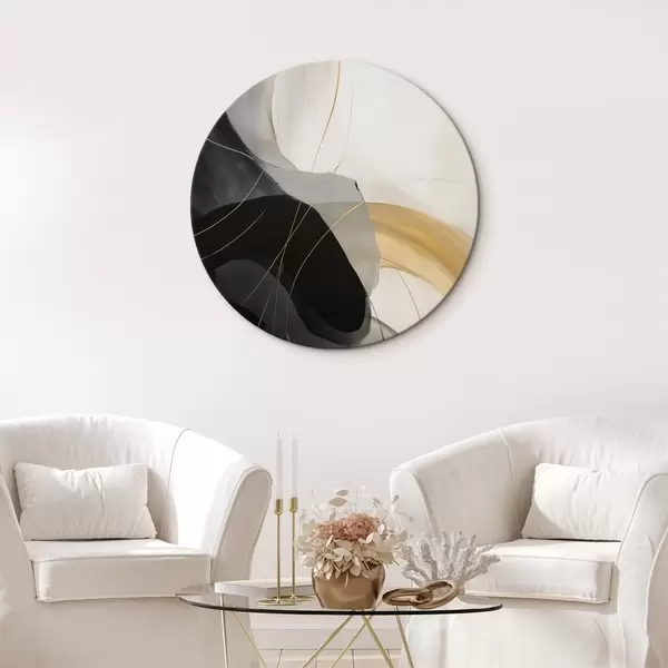 Runde Wandbilder Weiche Kurven in Schwarz und Beige mit einem warmen Akzent r46542