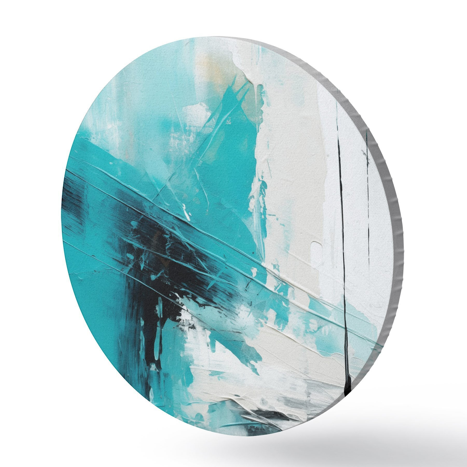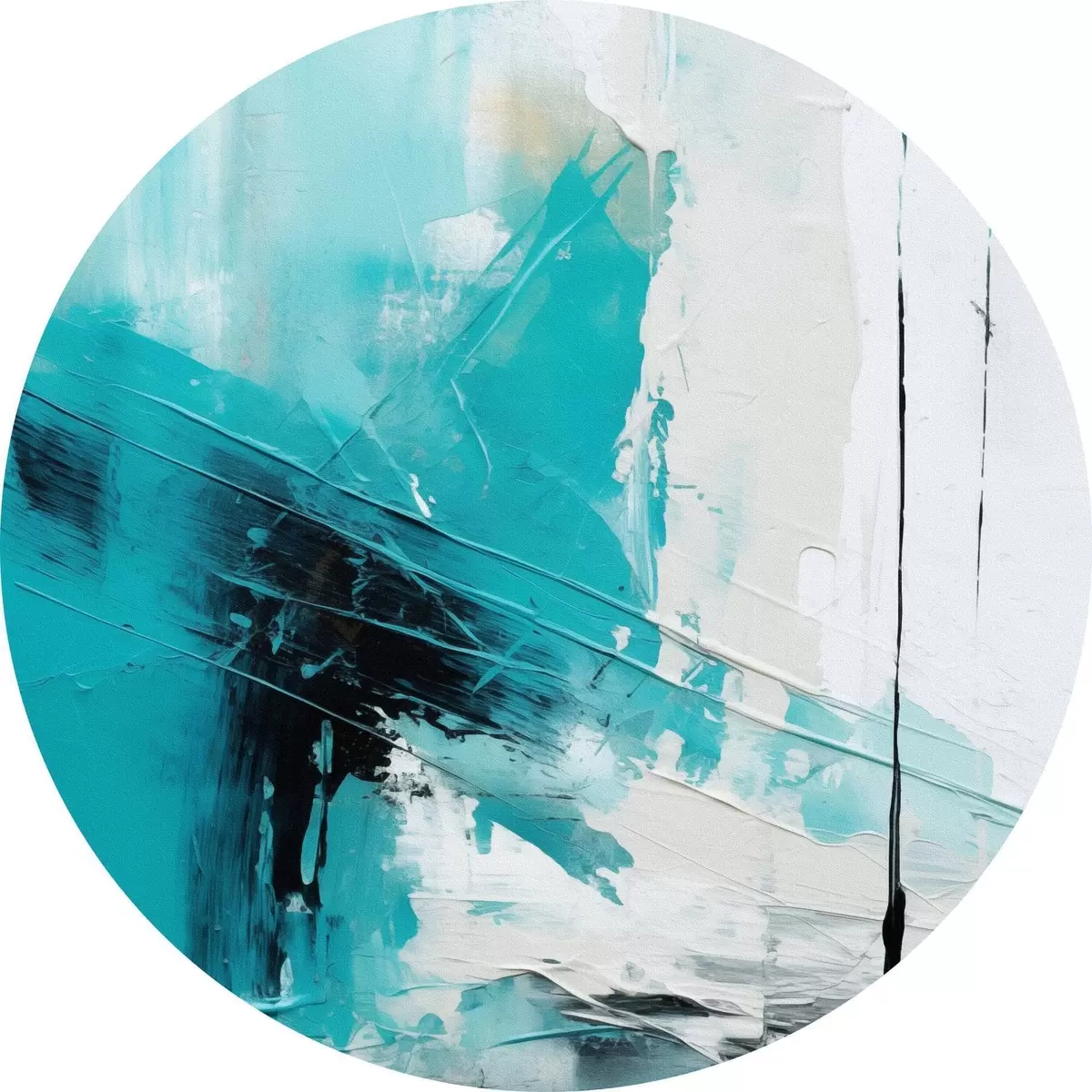 Runde Wandbilder Türkisfarbene Striche auf Weiß mit einem schwarzen Strich Nr r46545