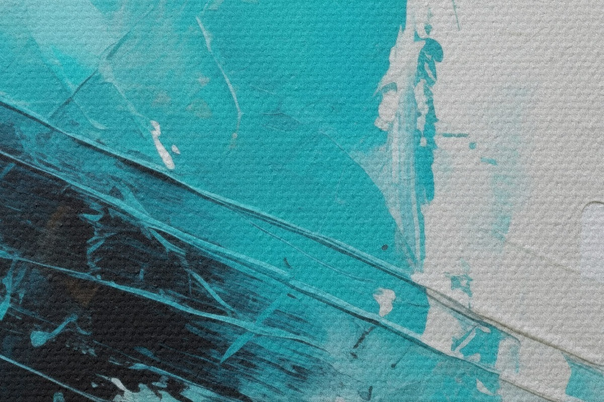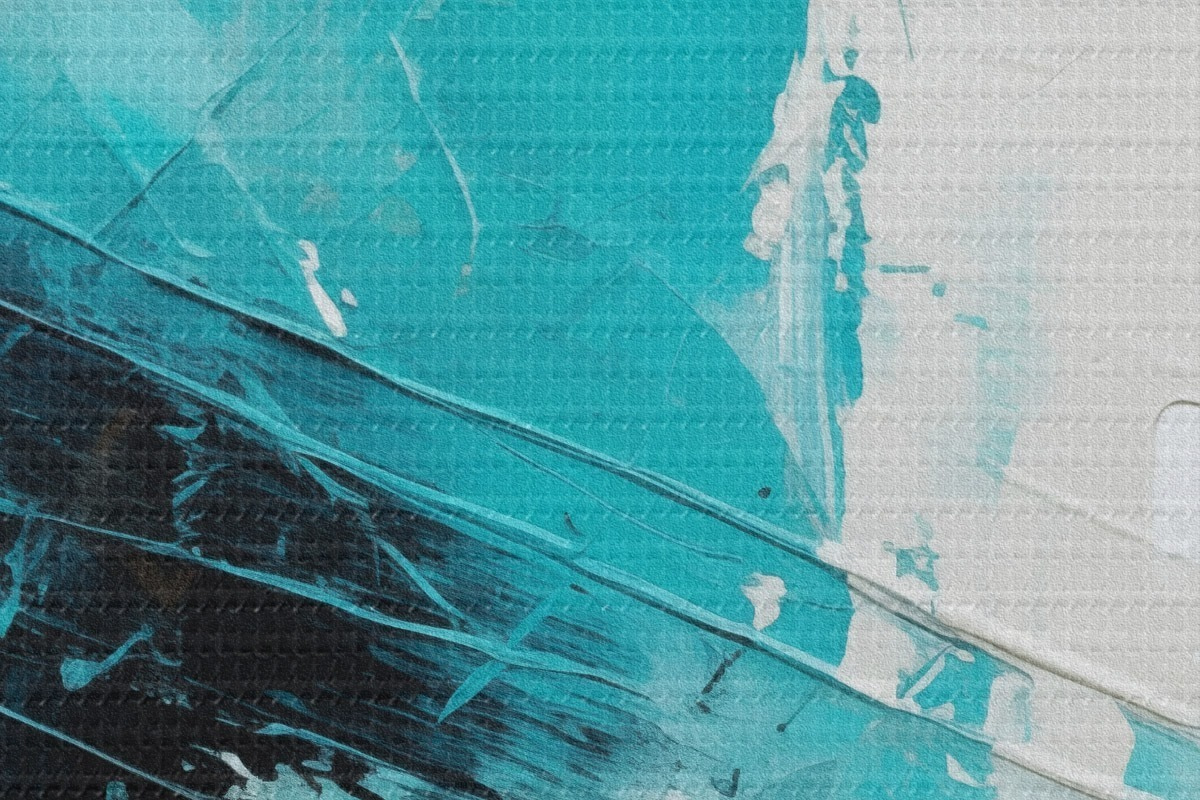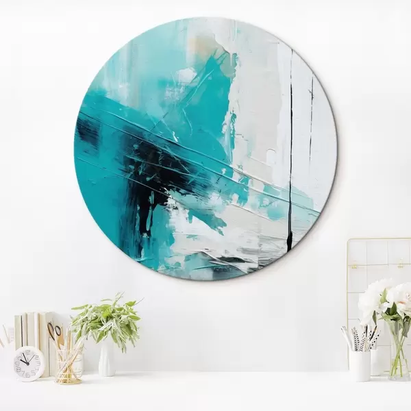 Runde Wandbilder Türkisfarbene Striche auf Weiß mit einem schwarzen Strich r46545