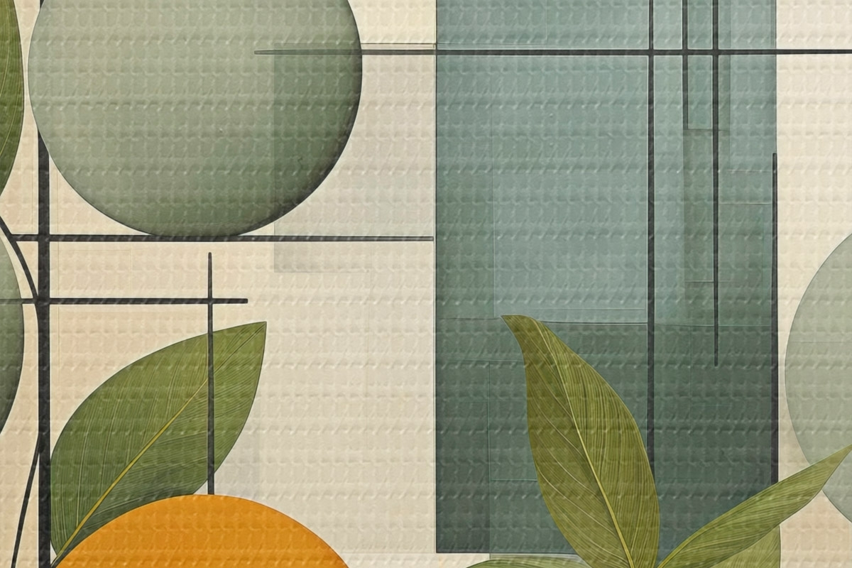 Runde Wandbilder Geometrische Abstraktion mit Pflanzen Nr r46579