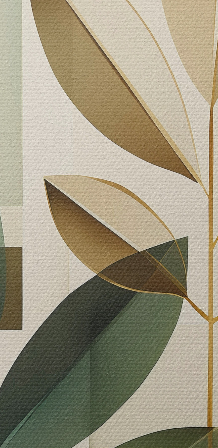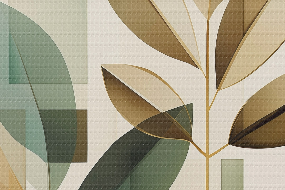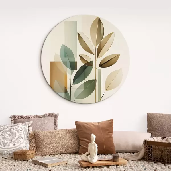 Runde Wandbilder Geometrische Abstraktion mit Blättern r46581