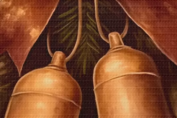 Runde Wandbilder Vintage-Weihnachtsdekoration mit zwei Glocken und einer Schleife r46626