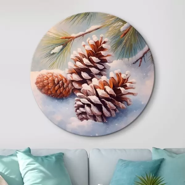 Runde Wandbilder Schneebedeckte Tannenzapfen und Äste Nr r46631