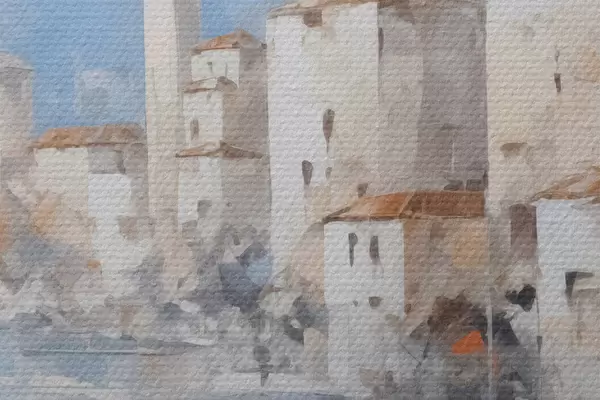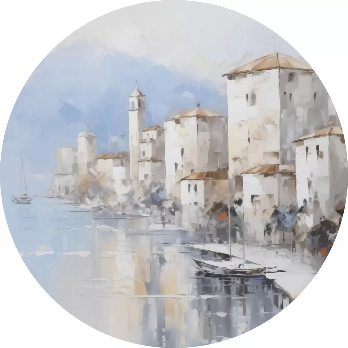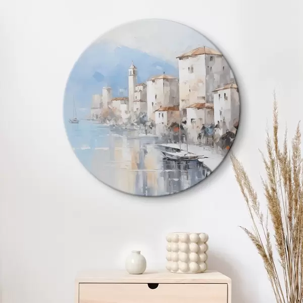 Runde Wandbilder Abstrakte Häuser an der Bucht, Nachahmung eines Gemäldes r46673