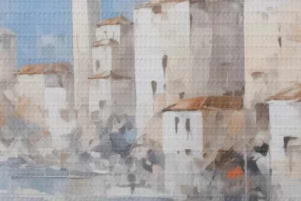 Runde Wandbilder Abstrakte Häuser an der Bucht, Nachahmung eines Gemäldes r46673