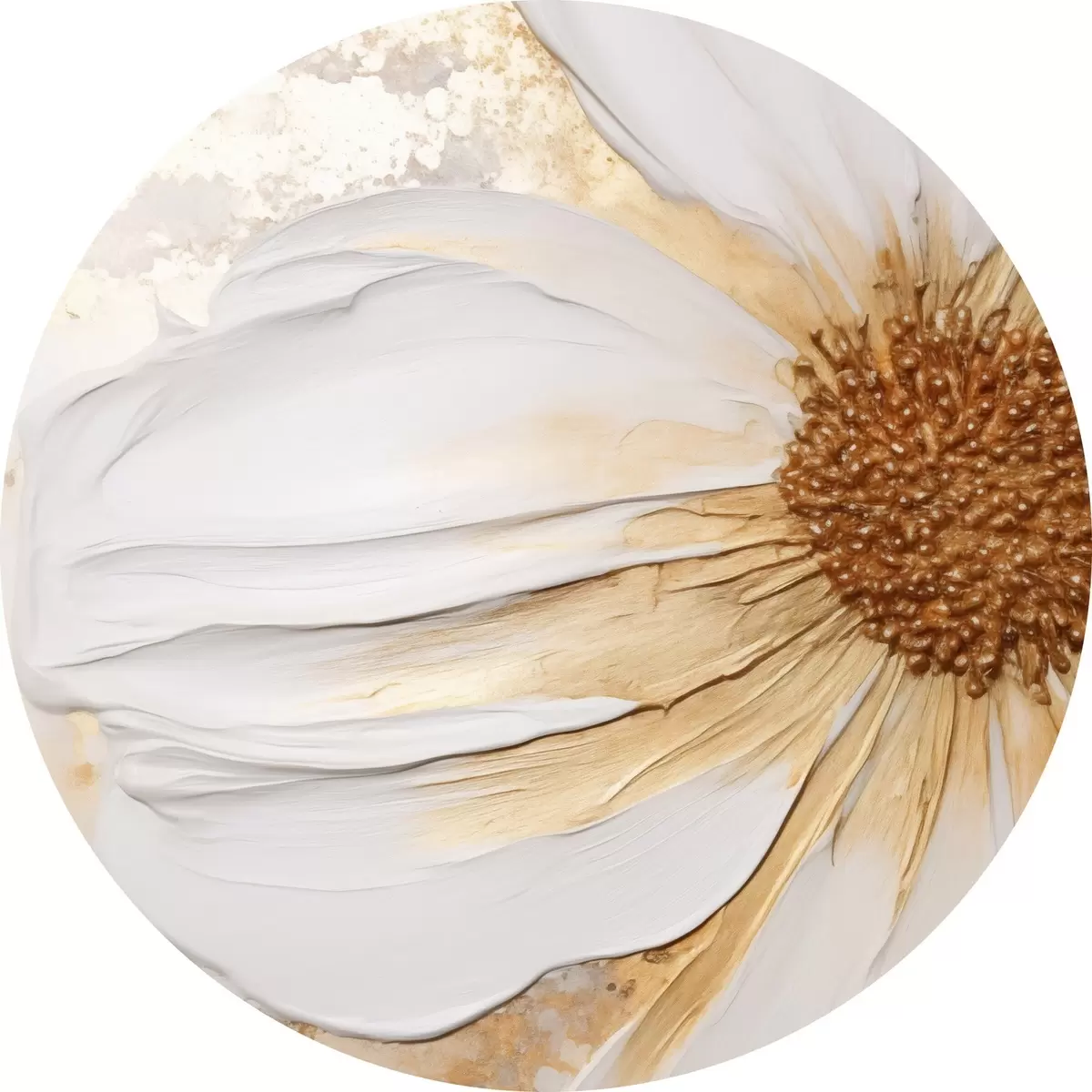Runde Wandbilder Eine weiße Blume mit zarten Blütenblättern, strukturiertem abstrakten Hintergrund, elegant, dekorative Kunst Nr r46692