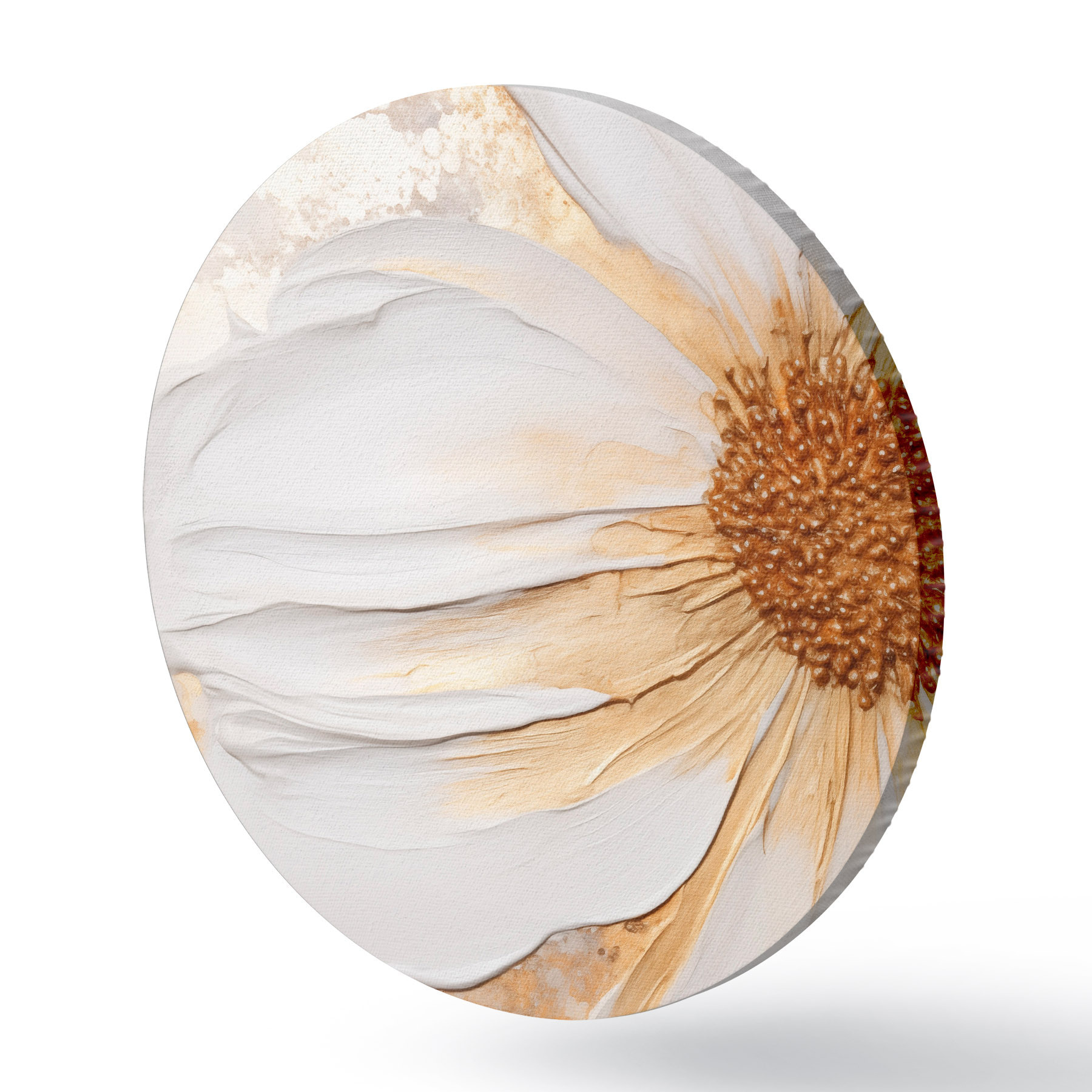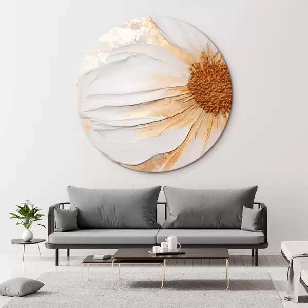 Runde Wandbilder Eine weiße Blume mit zarten Blütenblättern, strukturiertem abstrakten Hintergrund, elegant, dekorative Kunst r46692