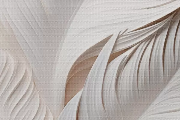 Runde Wandbilder Weiße Blätter mit filigranen Details, die einen strukturierten und vielschichtigen Effekt erzeugen, minimalistische Kunst Nr r46706