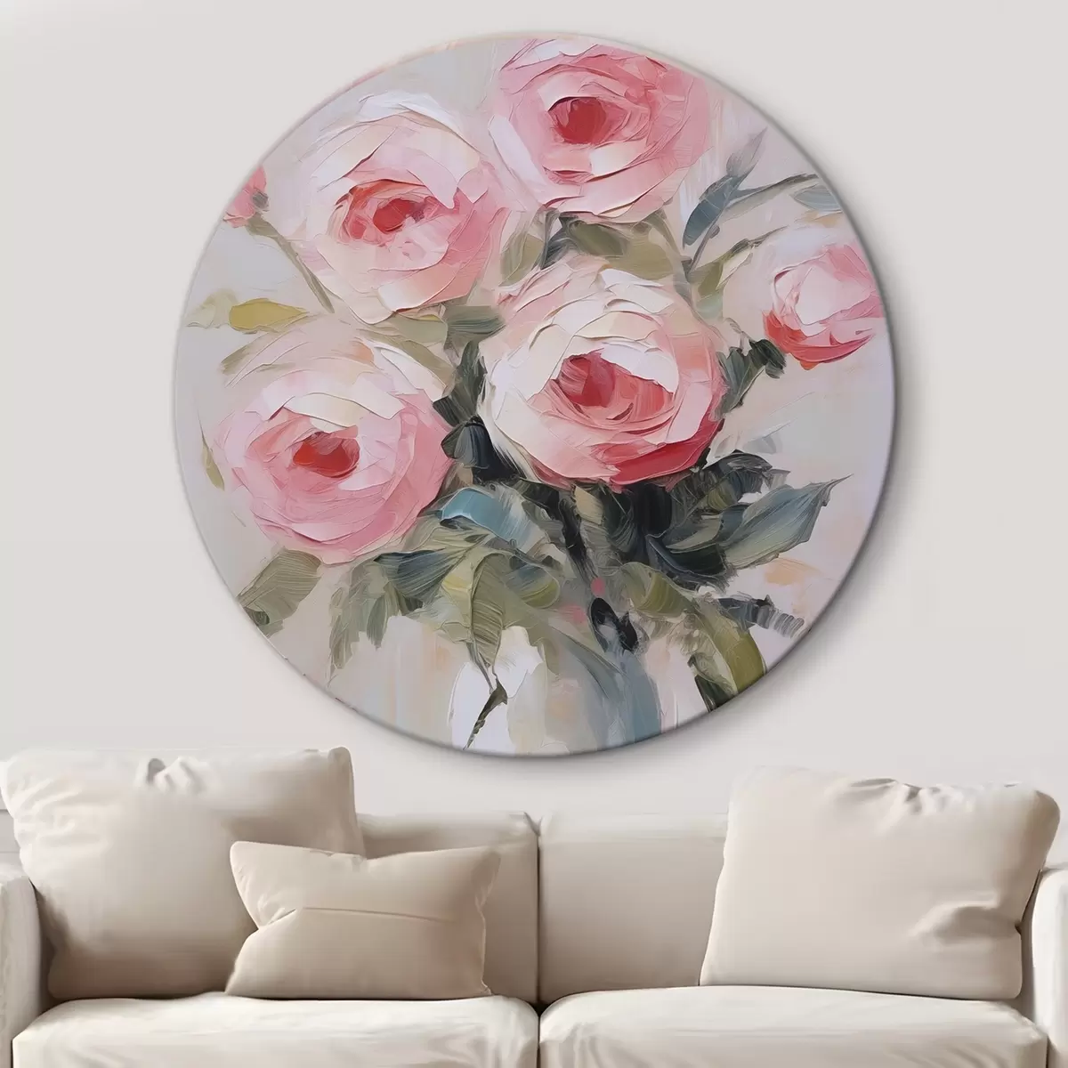 Runde Wandbilder Rosen in einer Vase, Imitationsgemälde Nr r46742