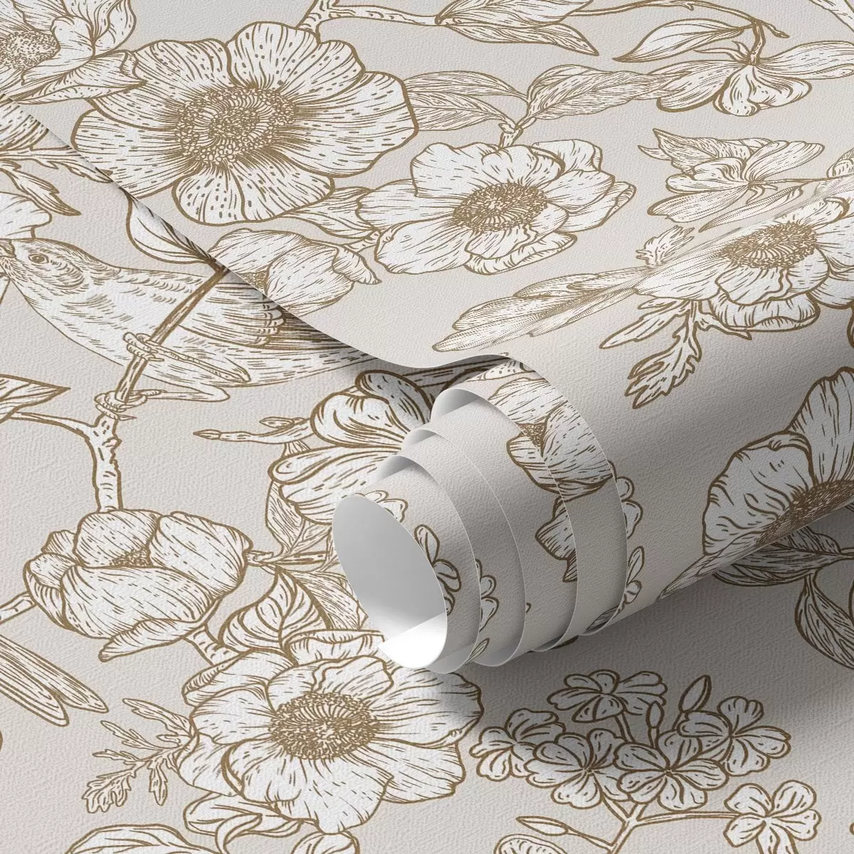 Tapete Gemalte Vögel auf Zweigen und Blumen Nr. a00017