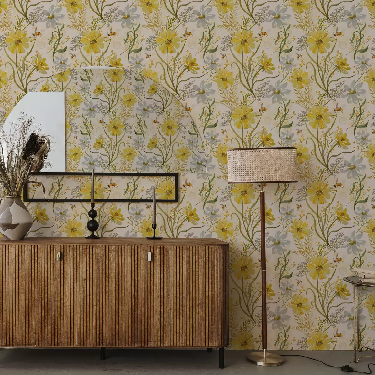 Tapete Helle florale Komposition in gelber Farbe Nr. a00045