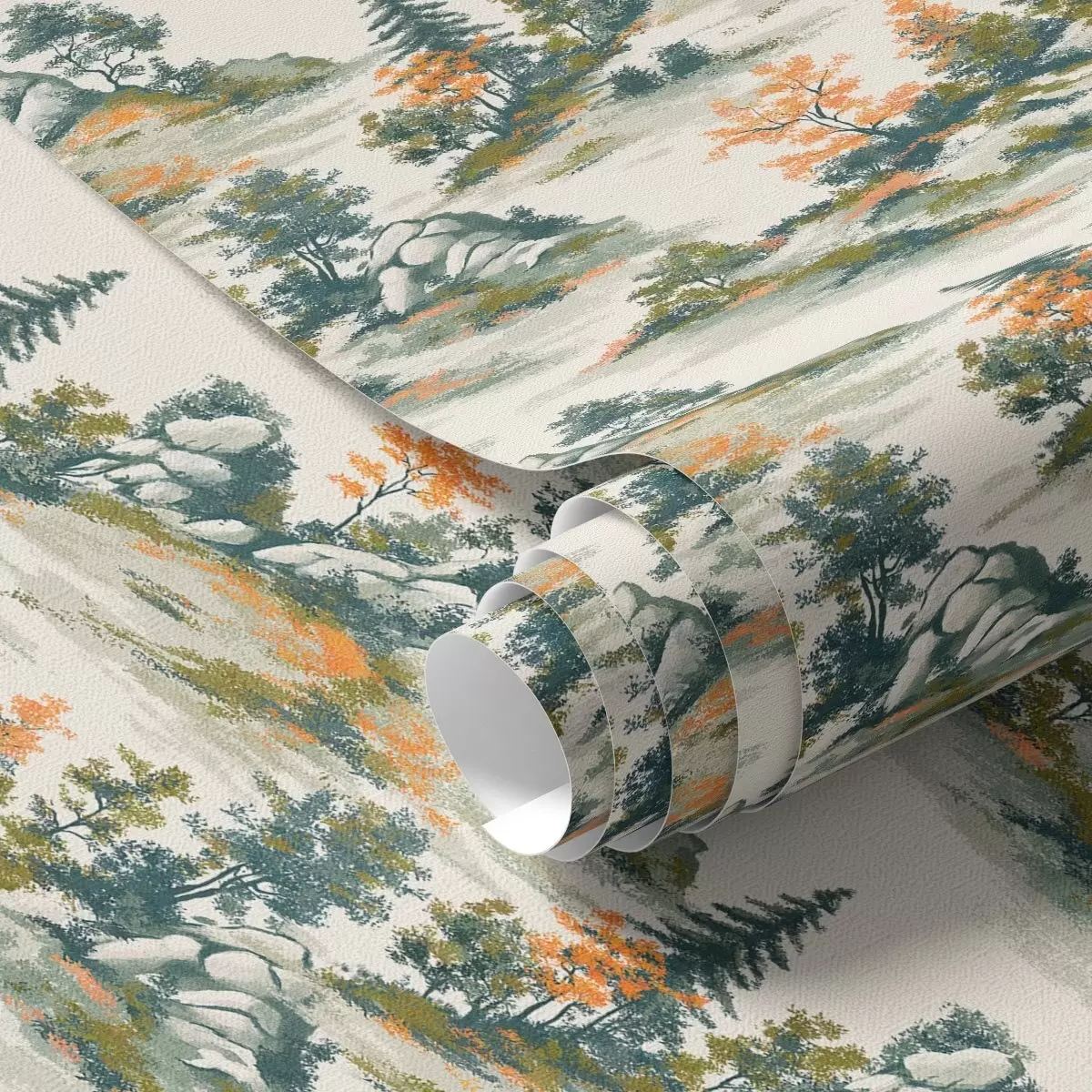 Tapete Bäume auf bergigen Felsvorsprüngen mit Steinen Nr. a00090