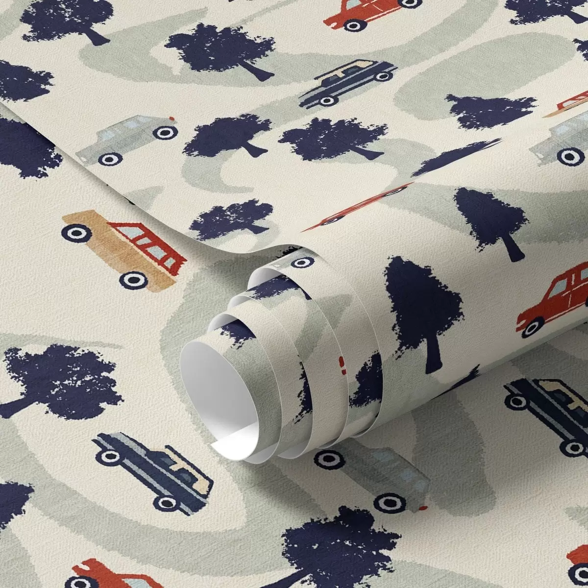 Tapete Lustige Autos zwischen den Bäumen auf einem cremefarbenen Hintergrund Nr. a00119