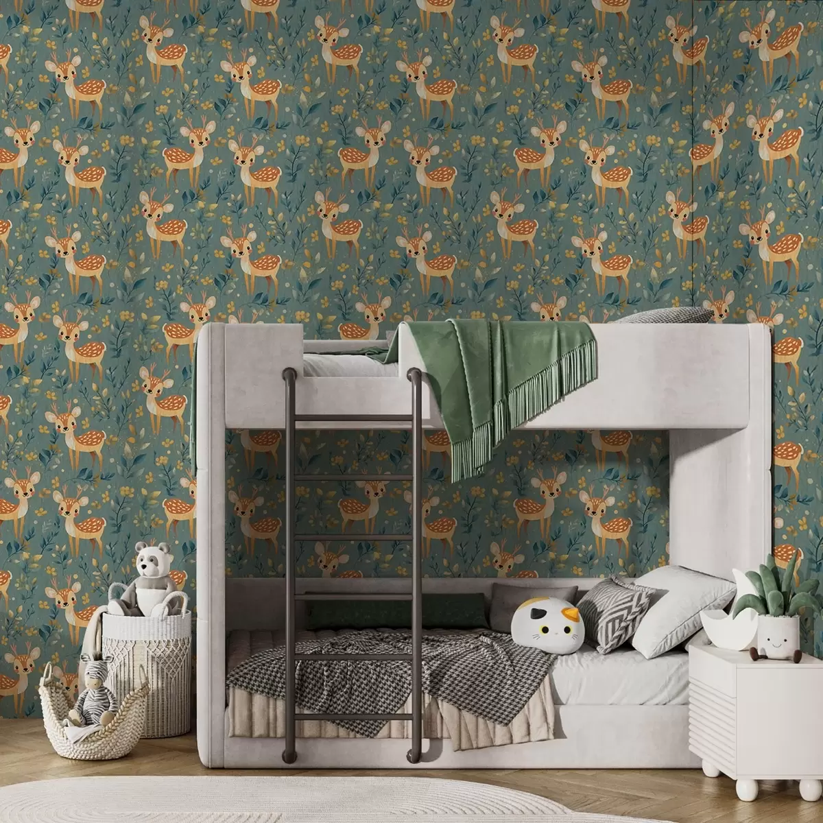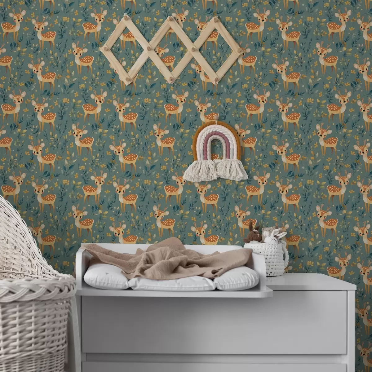 Tapete Baby-Hirsch im Wald mit gelben Blättern Nr. a00124v1