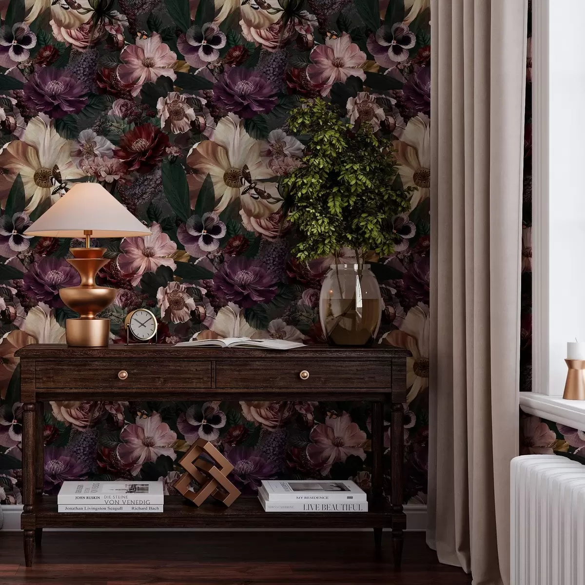 Tapete Kunstblumendruck in dunklen Farben Nr. a00147