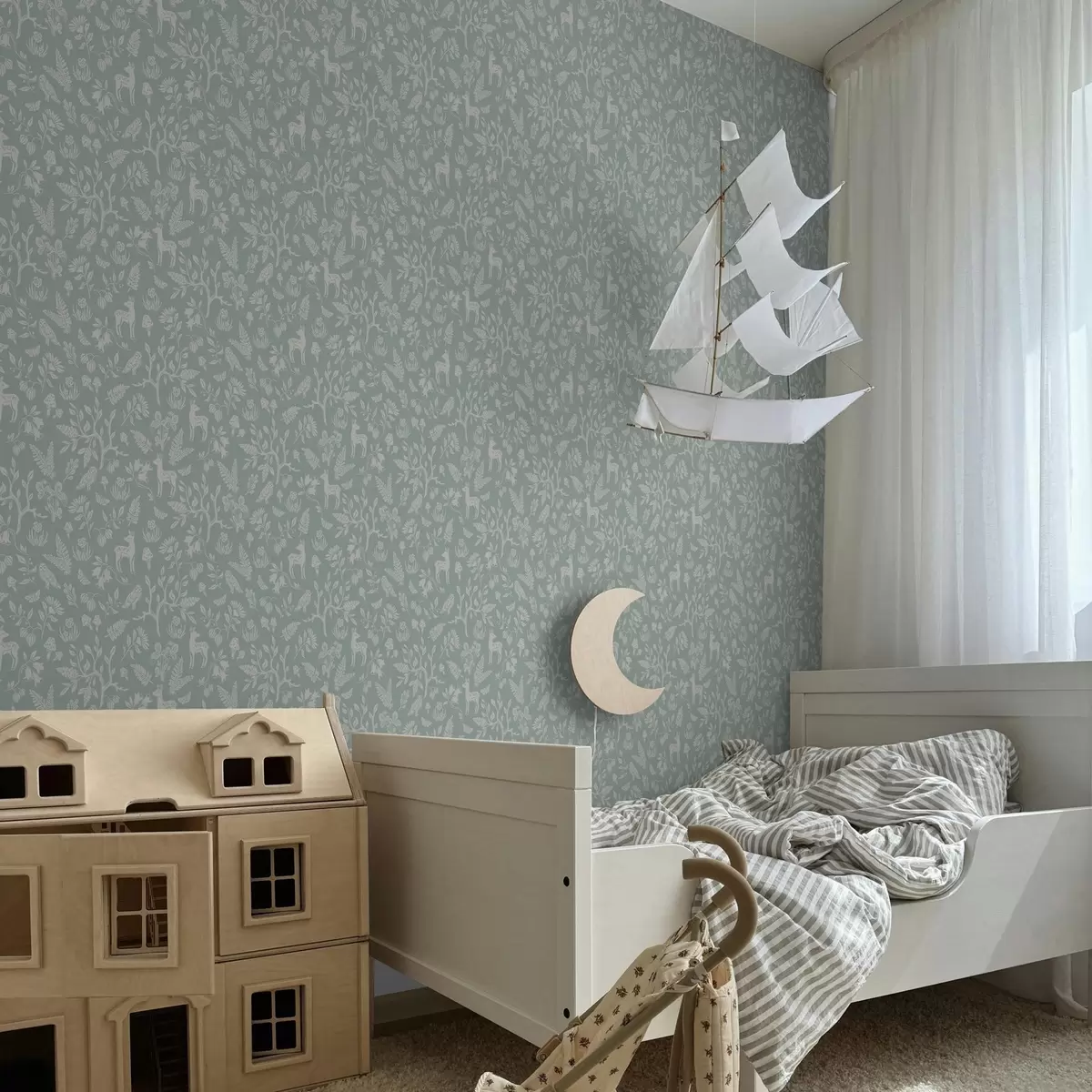 Tapete Skandinavische Tiere und Pflanzen auf einem mintfarbenen Hintergrund Nr. a00149