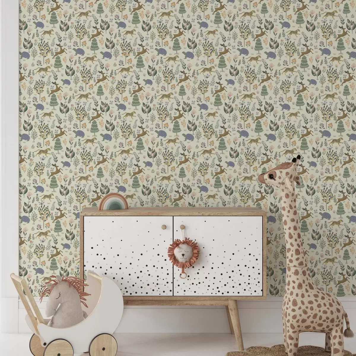 Tapete Retro-Illustration mit Leoparden, Bäumen und Hirschen Nr. a00184