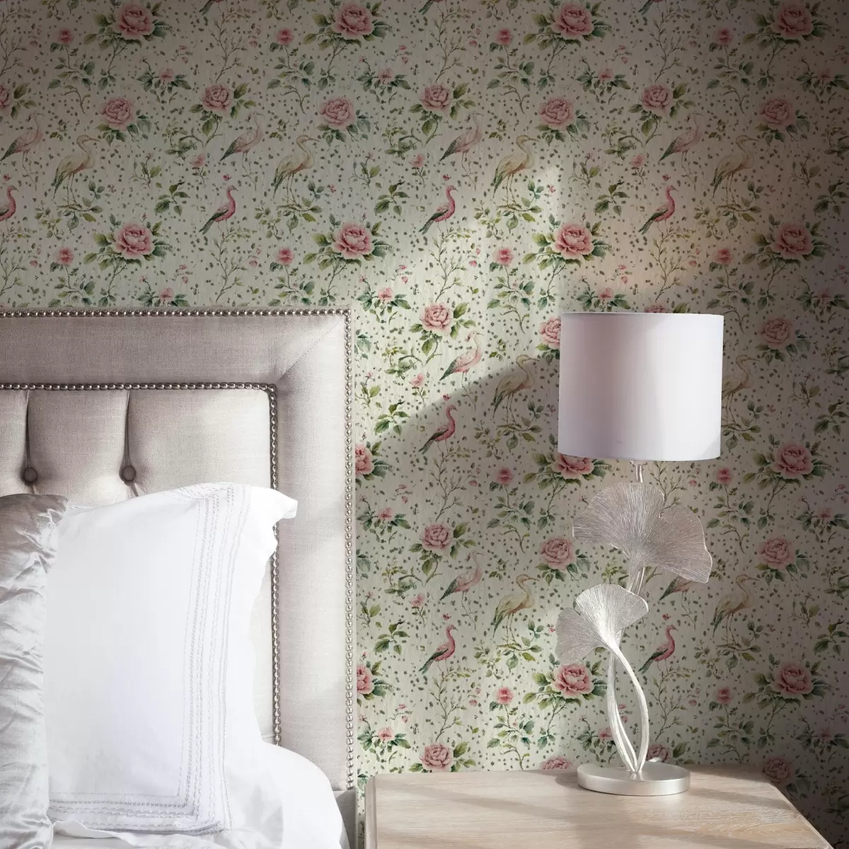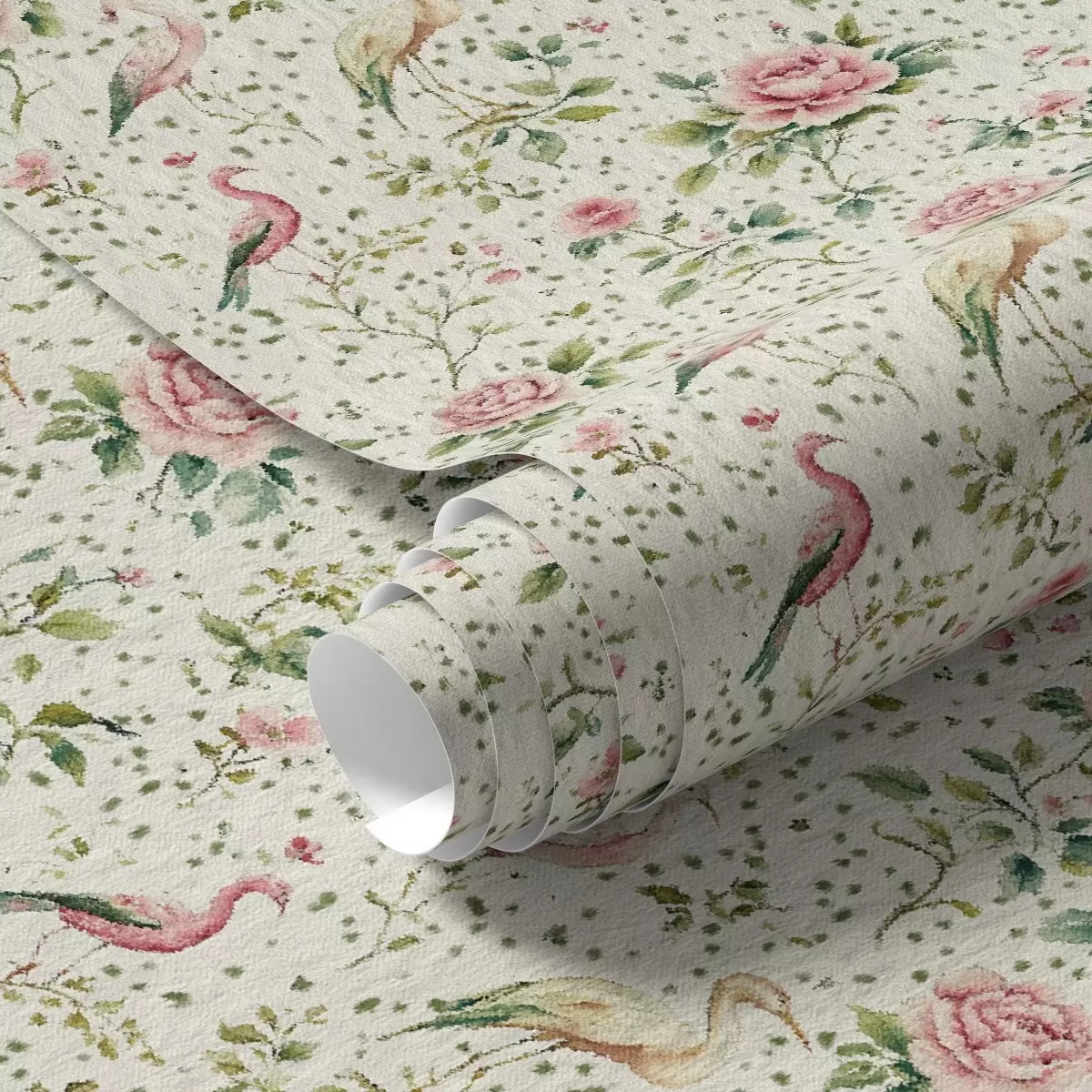 Tapete Pastellrosa Rosen und Vögel im Shabby-Chic-Stil Nr. a00201