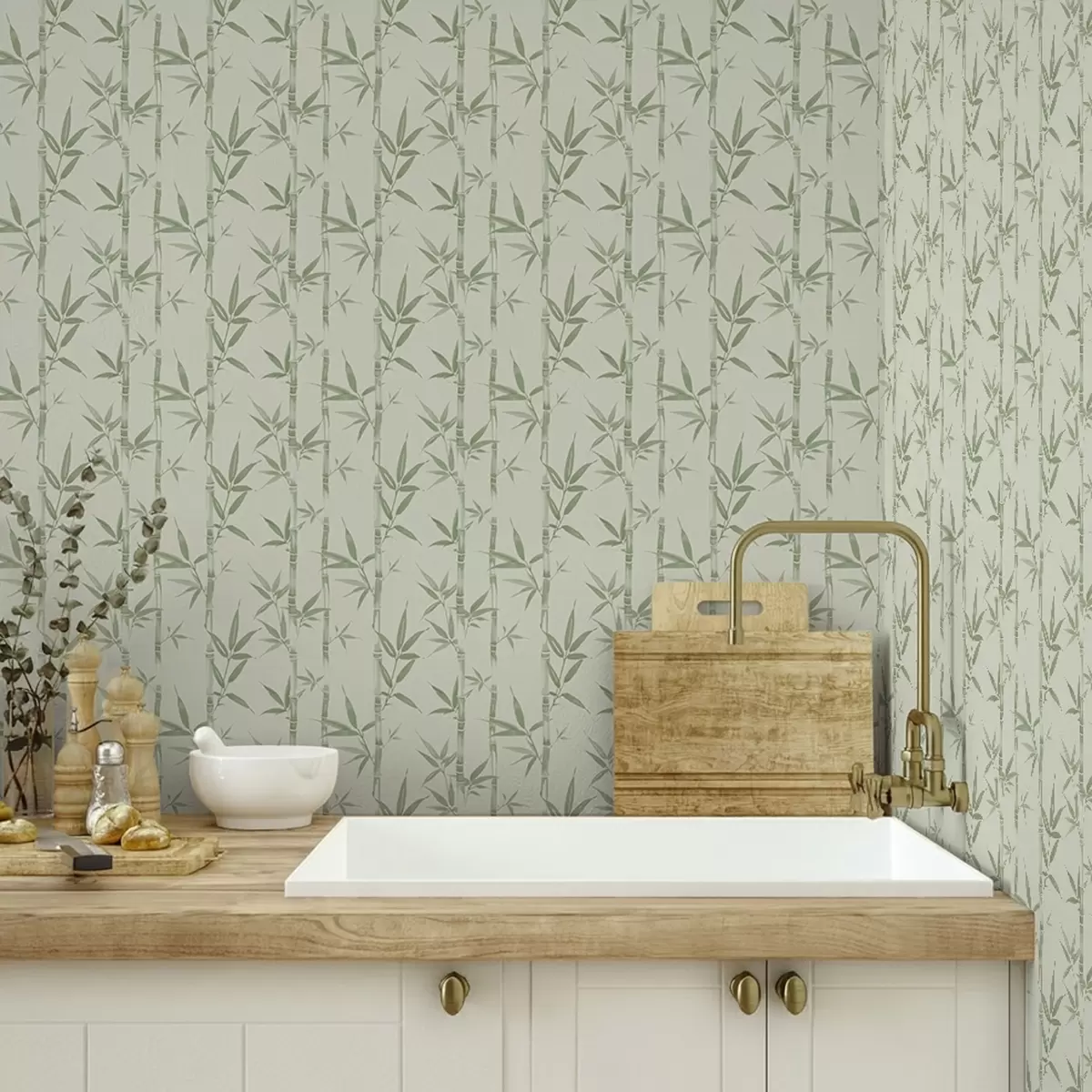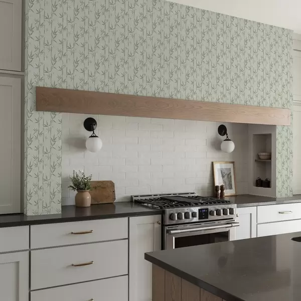 Tapete Hellgrüner Bambus auf weichem pastellfarbenem Hintergrund Nr. a00236v1