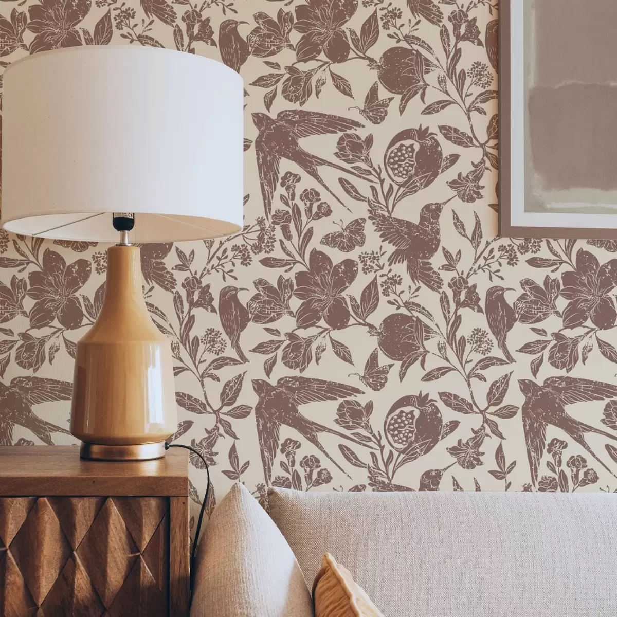 Tapete Vögel, Granatäpfel und Blumen im Vintage-Stil Nr. a00263