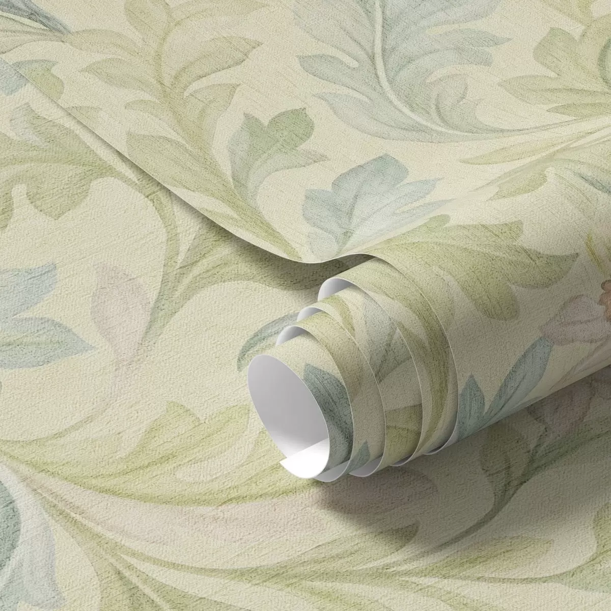 Tapete Vintage Blätter auf gelblichem Hintergrund, weiche Farben Nr. a00277v1
